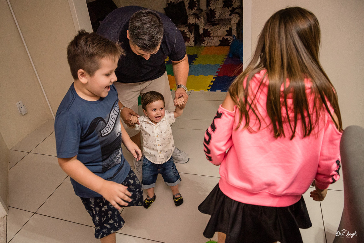 Ele teve sua festinha no espaço que ele mais ama, sua casinha, com as pessoas que mais convive e com suas coisinhas todas pertinho. Mas claro que a mamãe e o papai criaram um dia especial, com decoração, com comidinhas especiais e claro que o Heitor estava um gatinho de camisa.