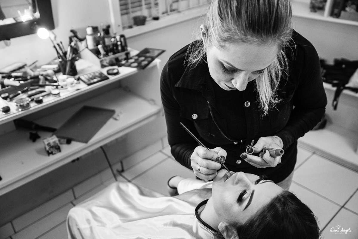 Ela ficou mais linda ainda. Foi a primeira vez de uma maquiagem tão elaborada. E ela se amou.
