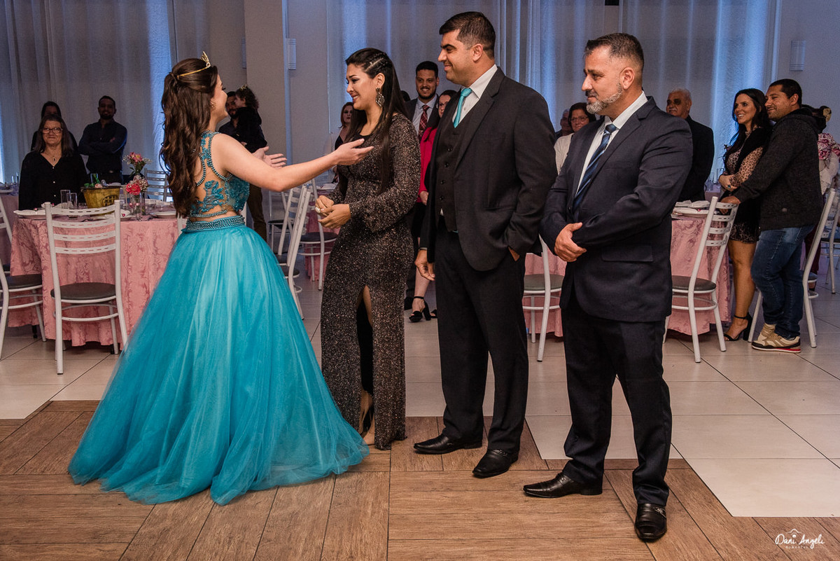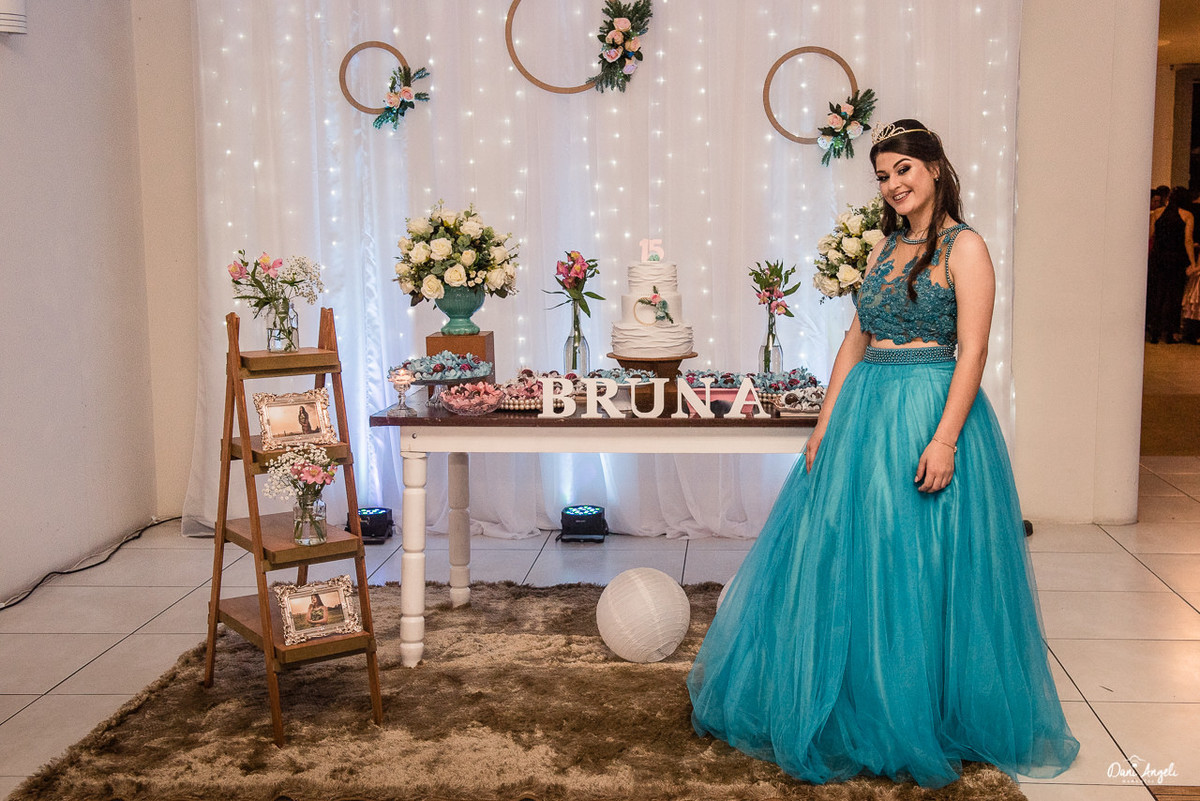 Fazer 15 anos é um dos momentos mais lindos da vida de uma menina. É a festa, que pode ser de várias formas. Com muitos estilos. Pode ter um tema super descolado, como pode-se manter o clássico. A Bruna escolheu um tema super clássico. Com vestido de princesa, troca de sapatos, apresentação e valsa. Tudo como manda o figurino.