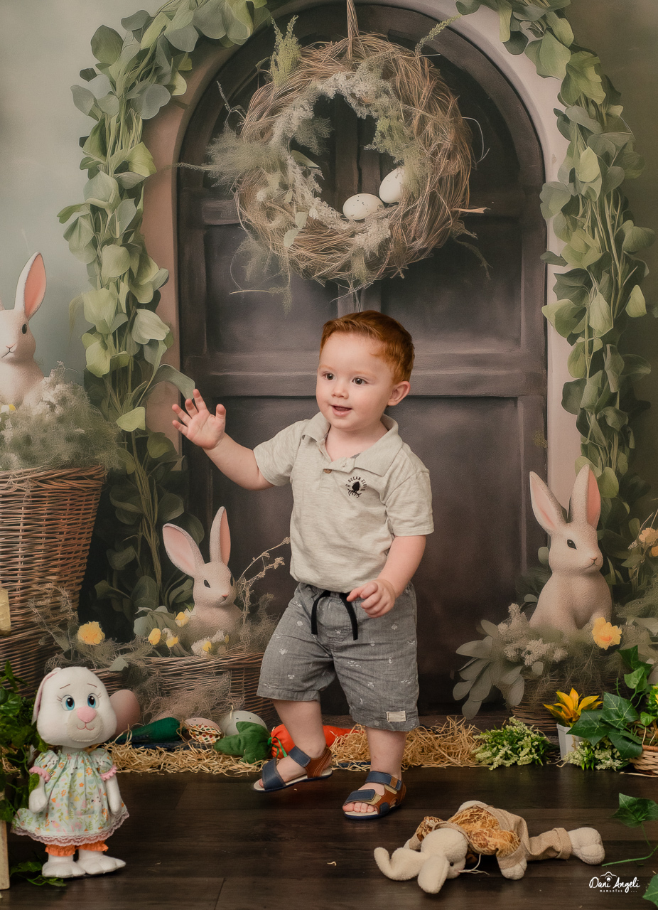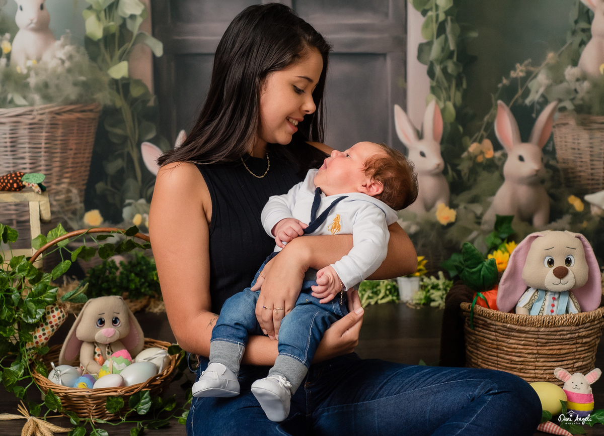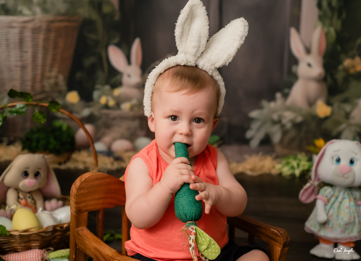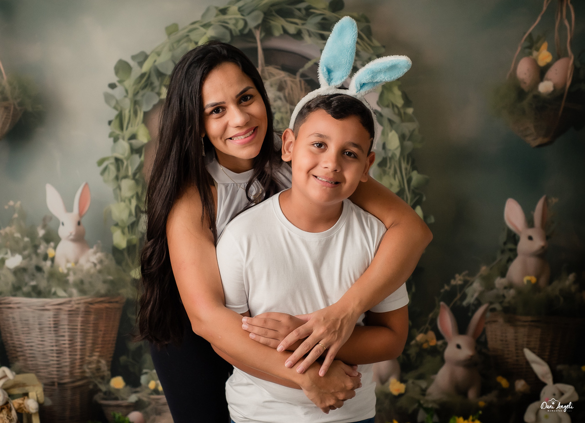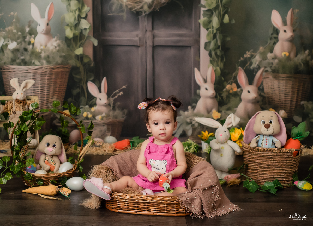 Nosso cenário está com detalhes encantadores, desde coelhinhos fofos até cenários que parecem saídos de um conto de fadas. É como se tivéssemos criado um pedacinho do próprio País das Maravilhas, só que com um toque especial de Páscoa.