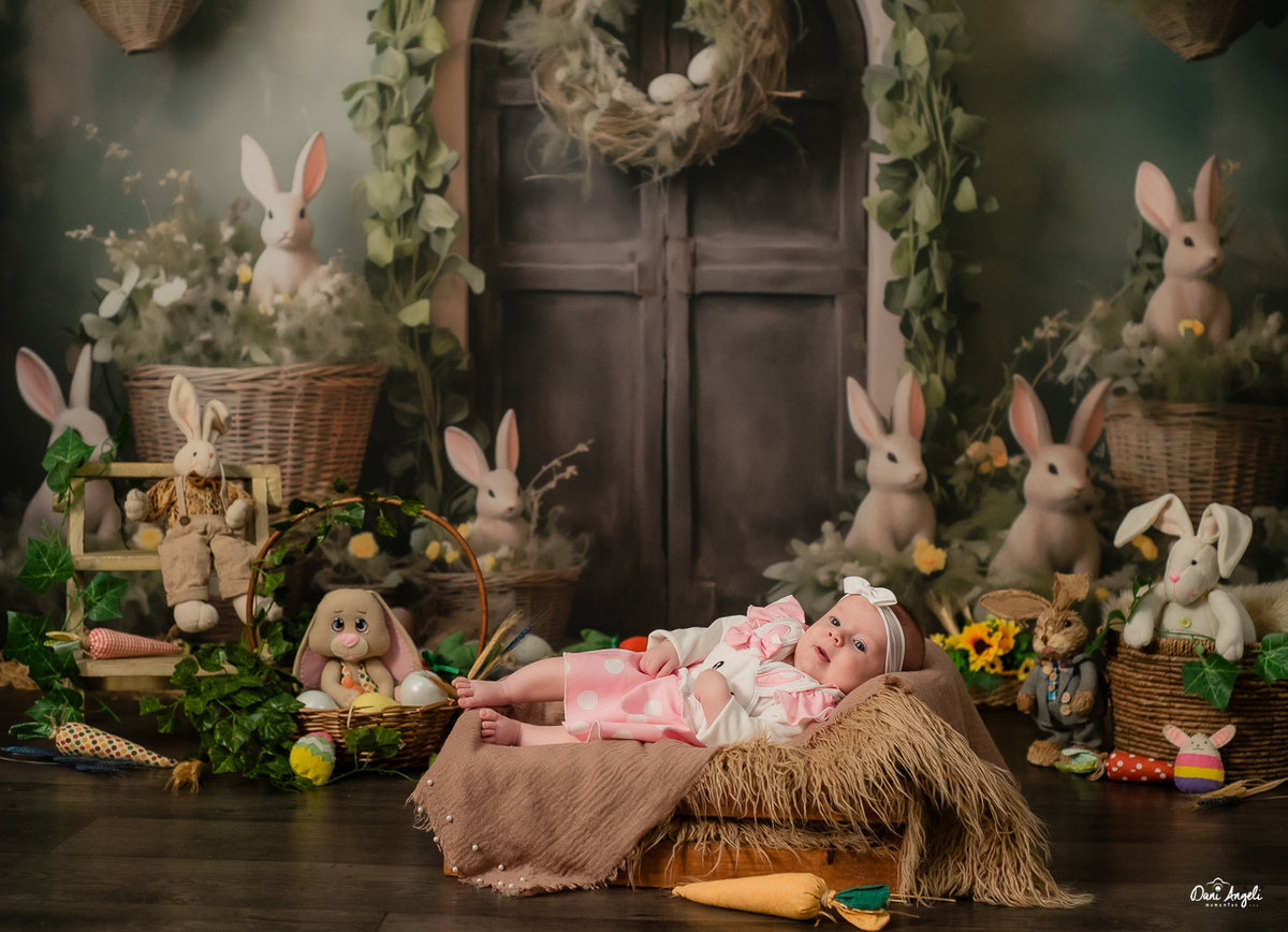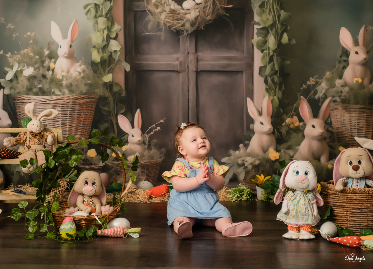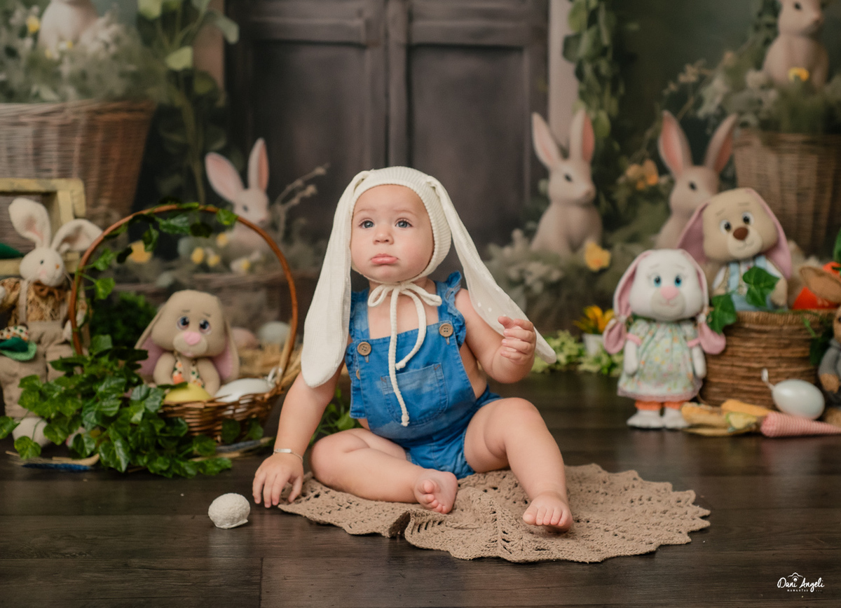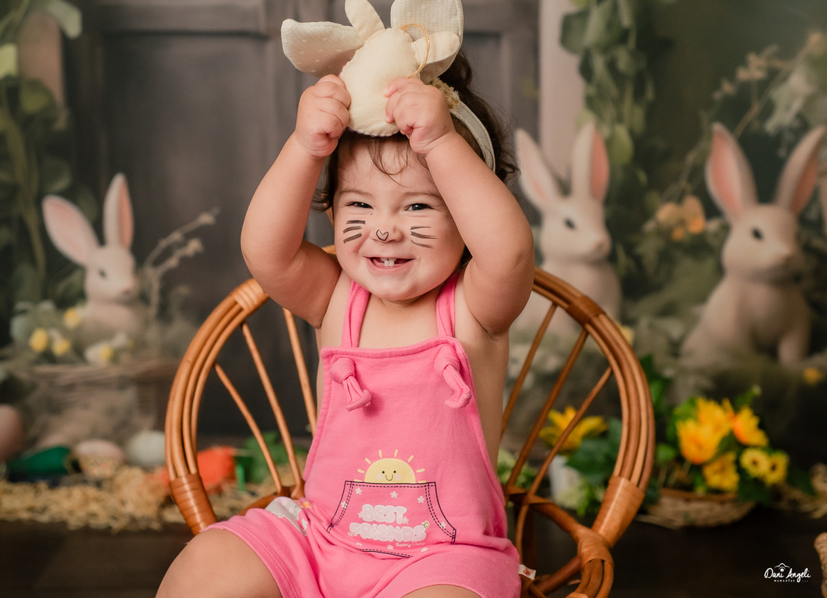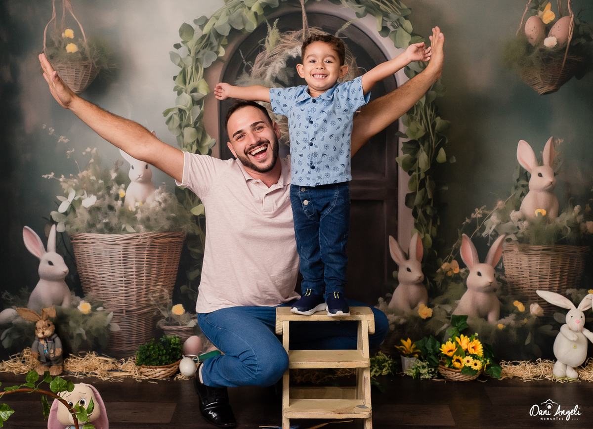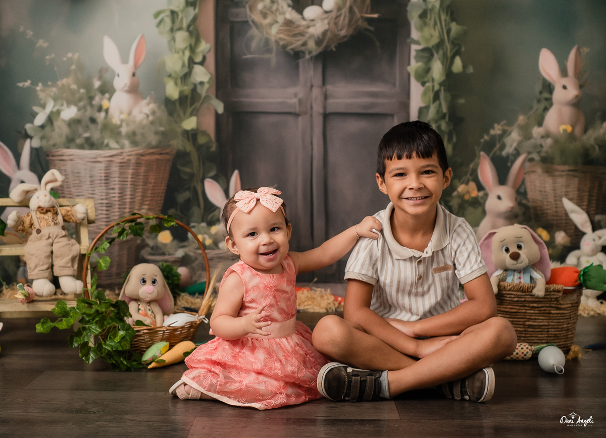 Nosso cenário está com detalhes encantadores, desde coelhinhos fofos até cenários que parecem saídos de um conto de fadas. É como se tivéssemos criado um pedacinho do próprio País das Maravilhas, só que com um toque especial de Páscoa.