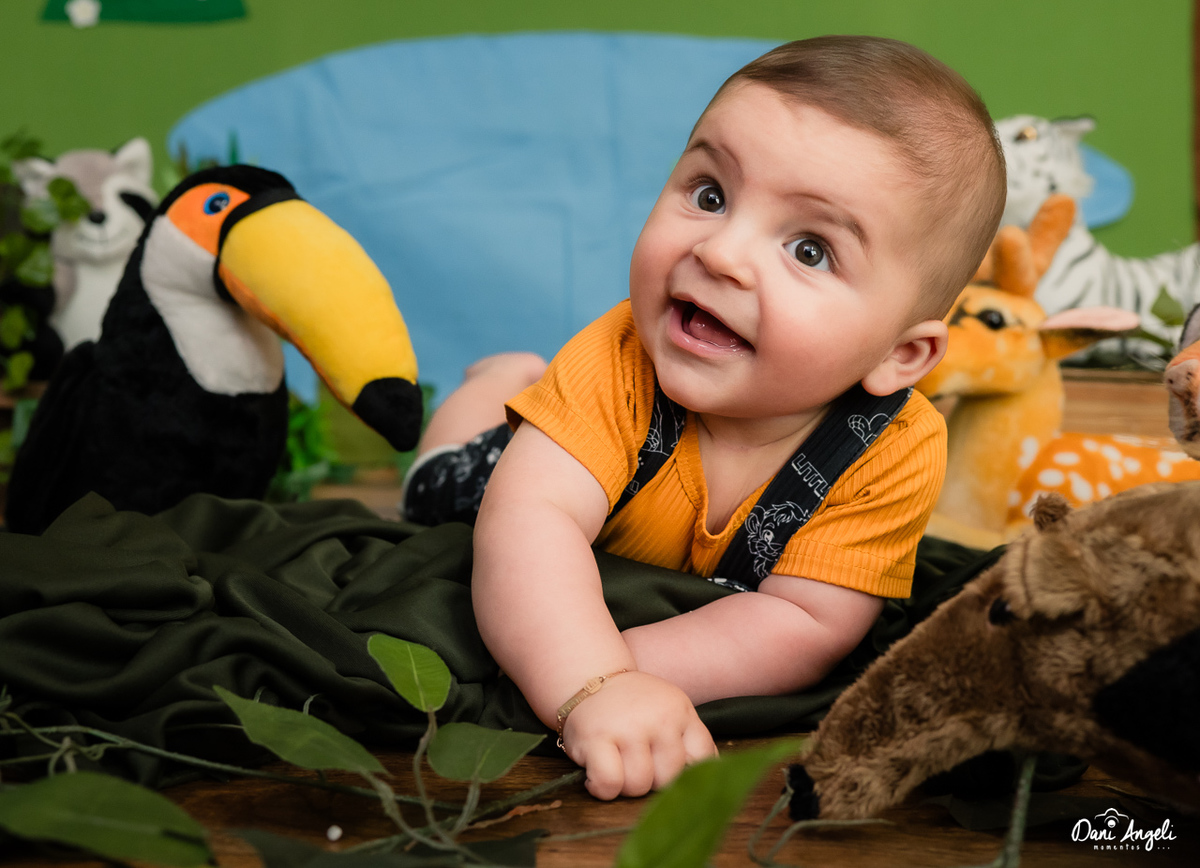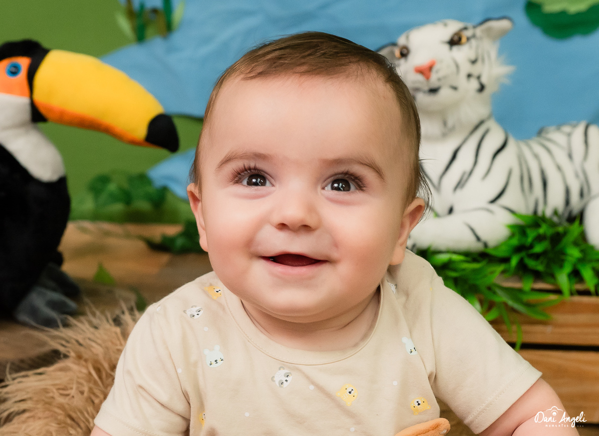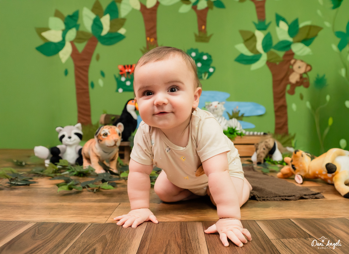 O cenário é encantador e cheio de cores que realçam a pureza de cada etapa do crescimento do seu bebê. A cada mês, vemos esses olhinhos brilharem, o sorriso se tornar mais confiante, e cada clique conta uma nova história da jornada que é o primeiro aninho de vida.