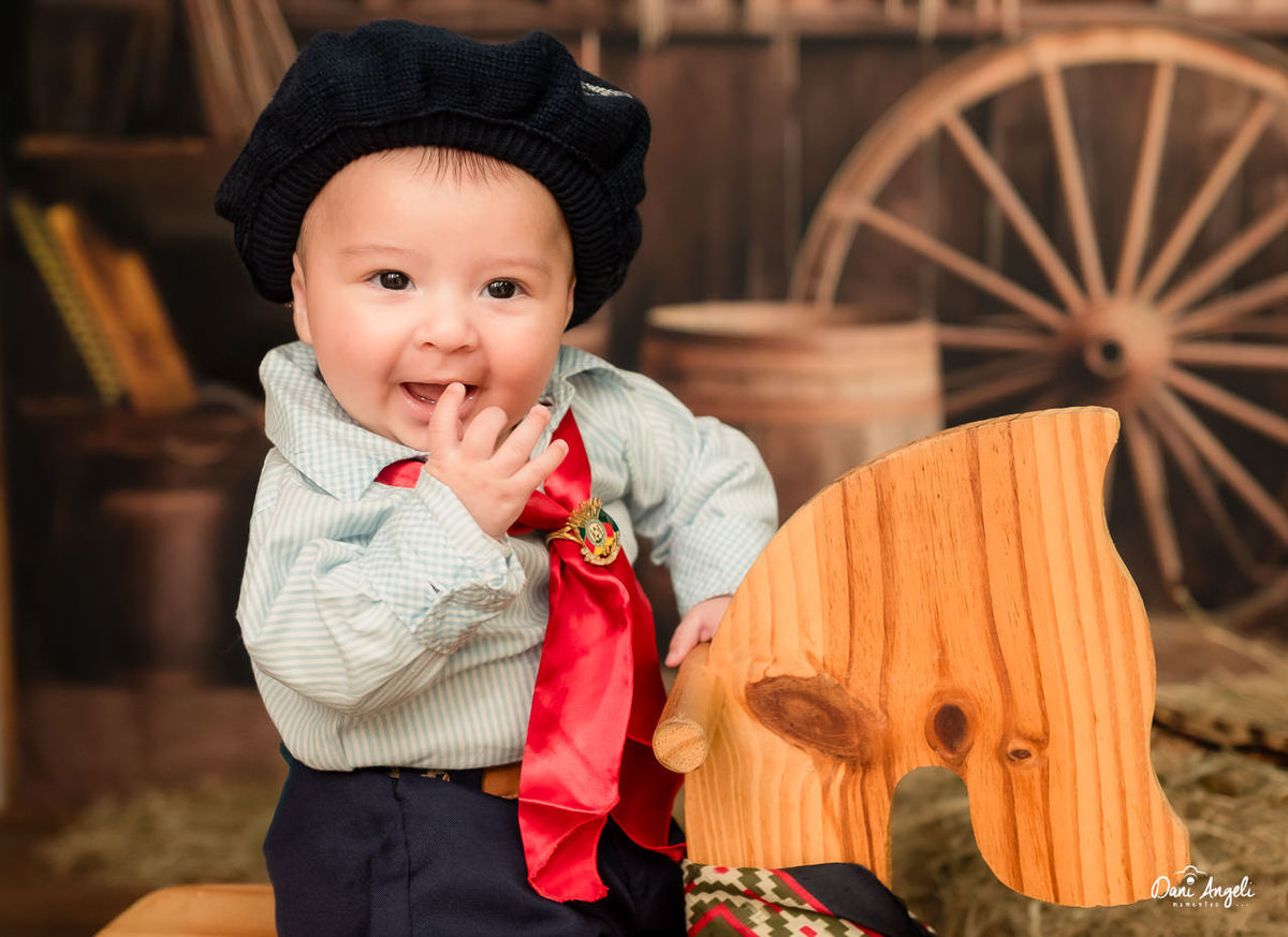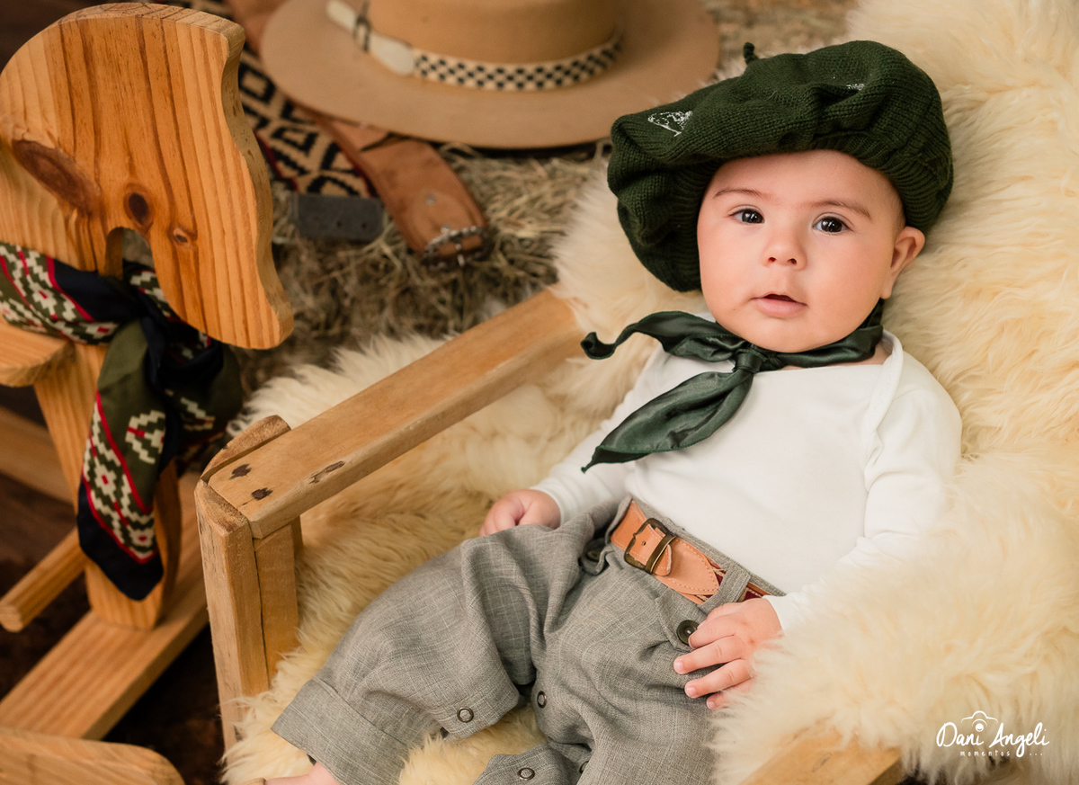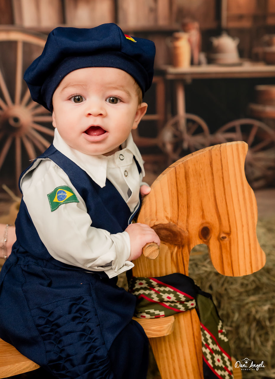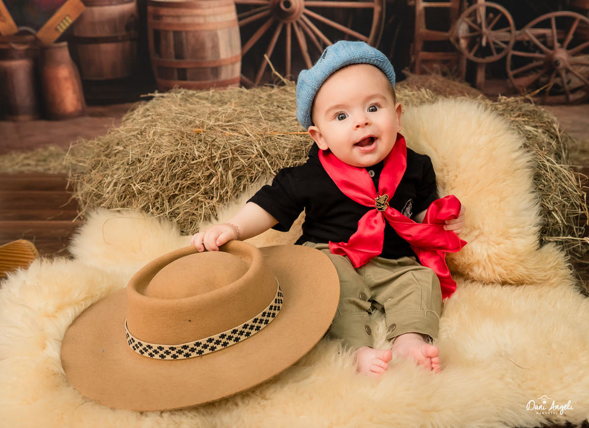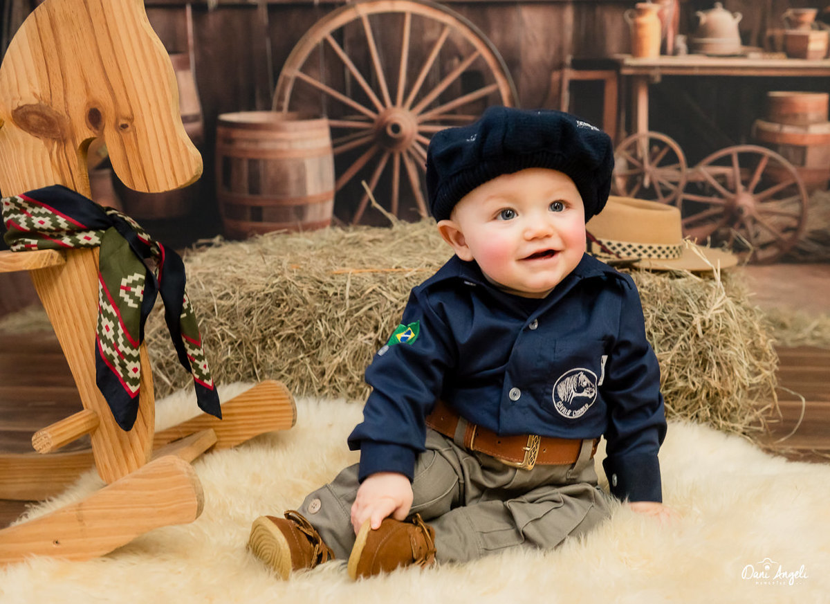 O acompanhamento mensal com temática gaúcha é mais do que fotografia: é memória viva. Cada detalhe – dos trajes típicos ao cenário cuidadosamente preparado – valoriza a fotografia infantil personalizada, criando lembranças que vão atravessar gerações.