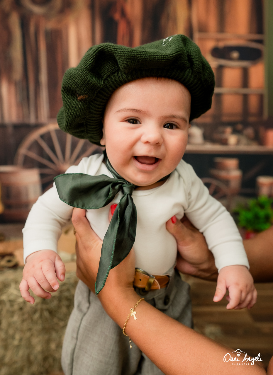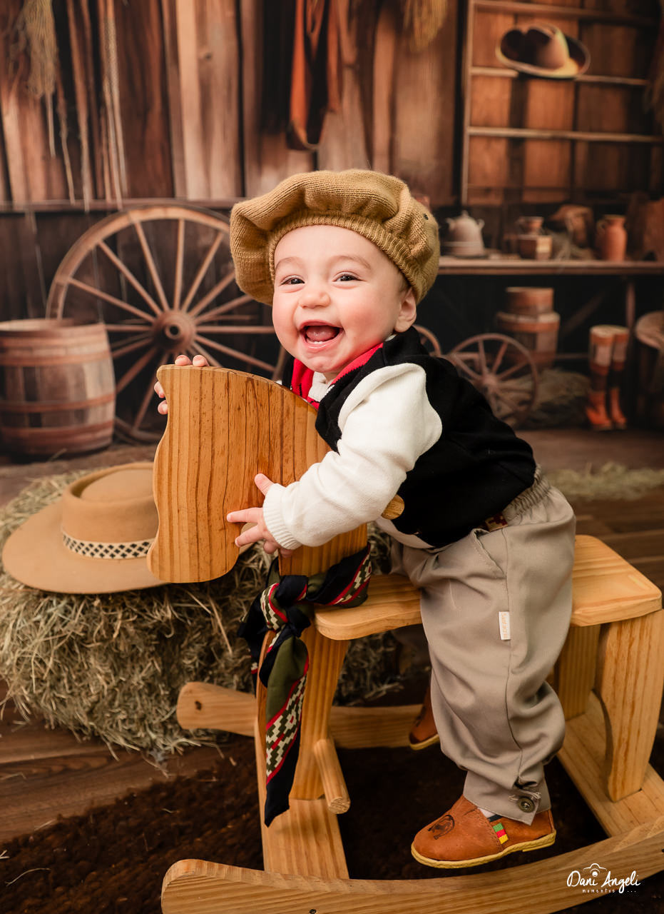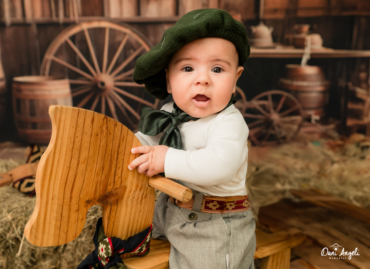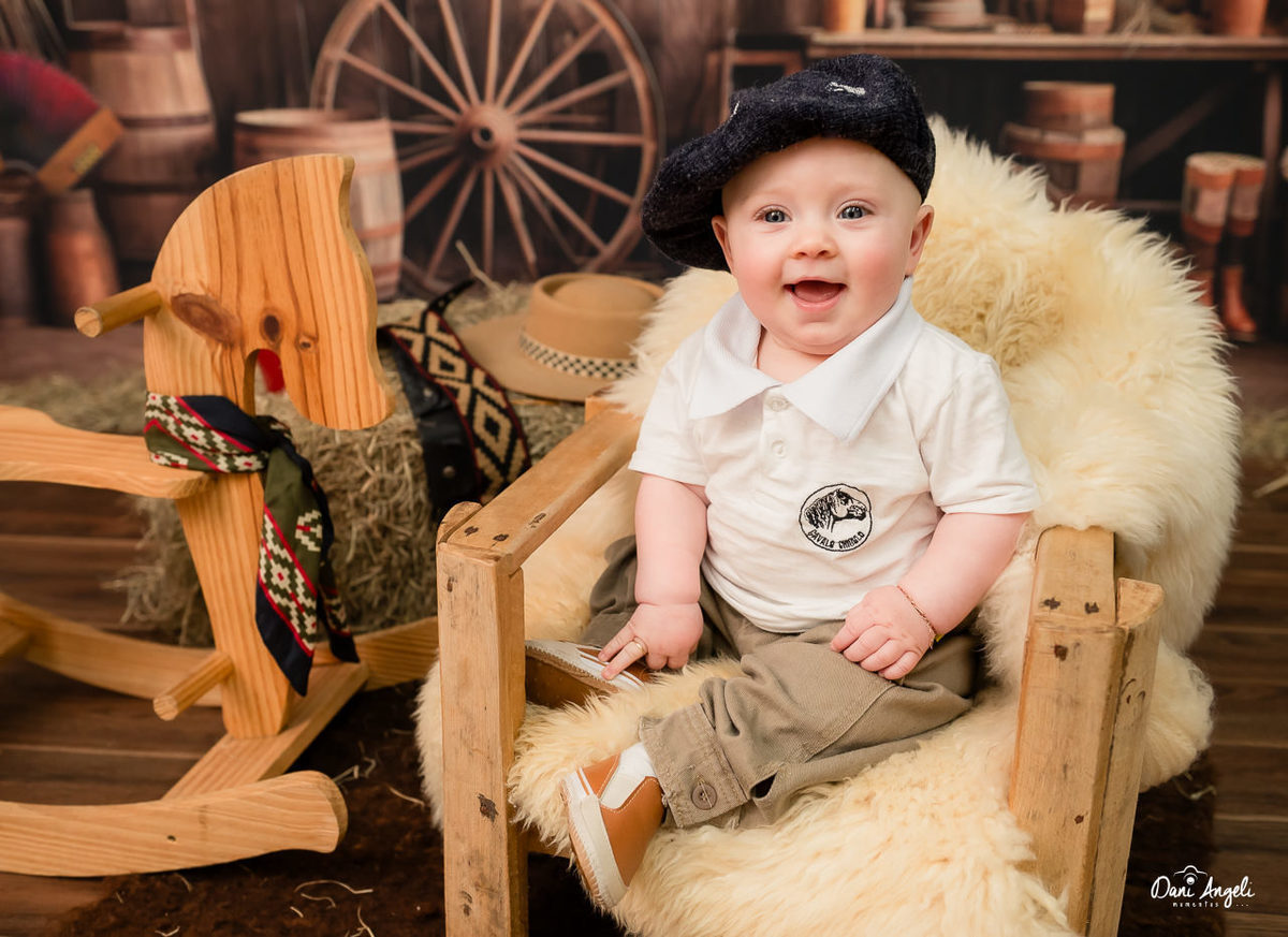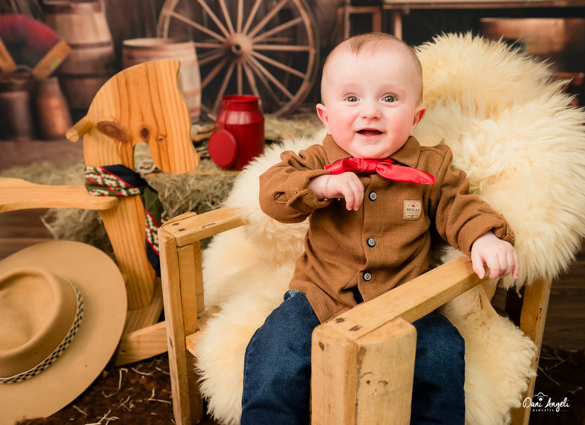 O acompanhamento mensal com temática gaúcha é mais do que fotografia: é memória viva. Cada detalhe – dos trajes típicos ao cenário cuidadosamente preparado – valoriza a fotografia infantil personalizada, criando lembranças que vão atravessar gerações.