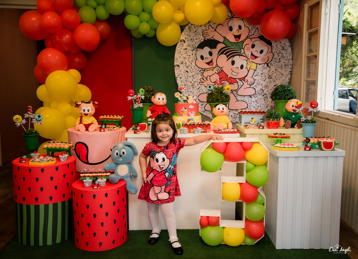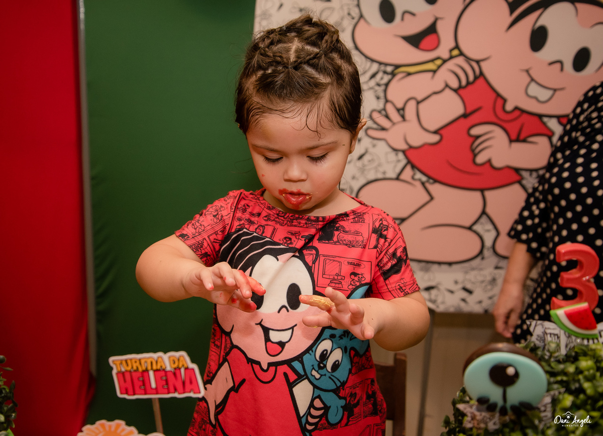 A Helena aproveitou cada momento. Ela é fã da Mônica e não poderia ter outro tema para a festa, né? hehehe.