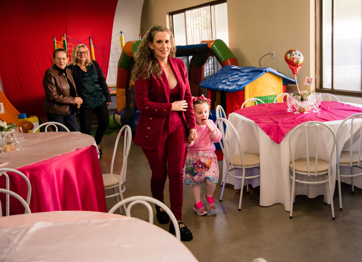 A comemoração foi duplamente divertida. As aniversariantes não pararam de sorrir e fizeram questão de interagir com todos os convidados.