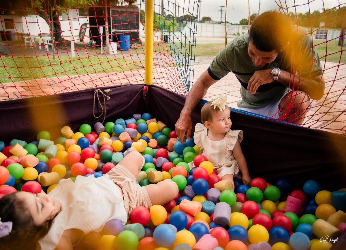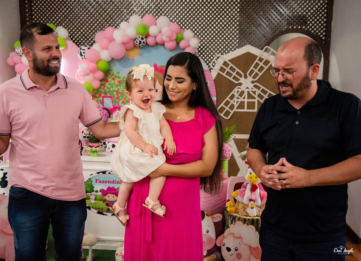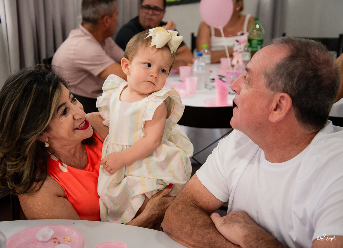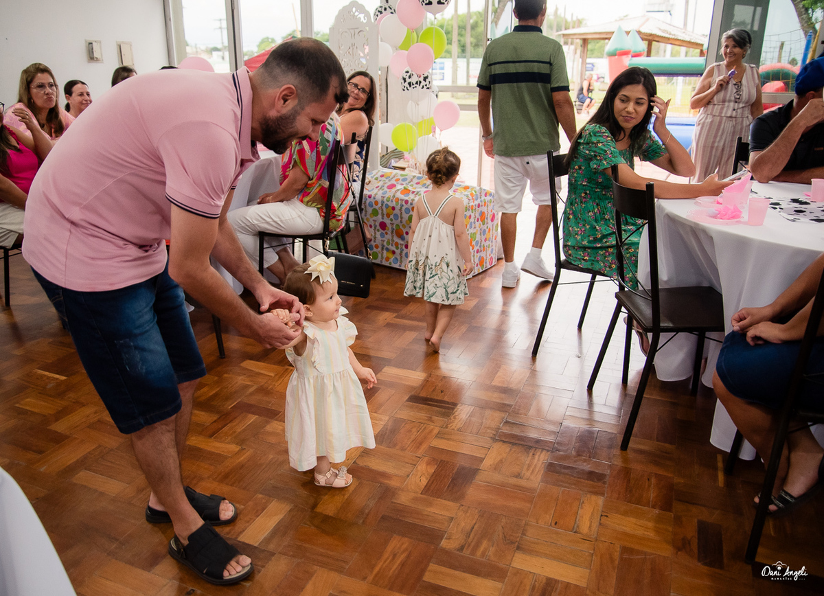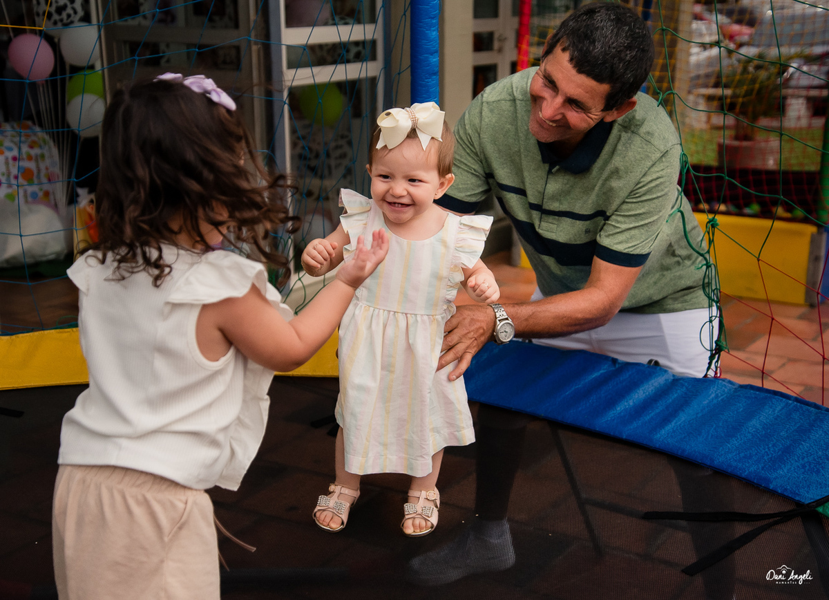 Em meio às risadas, abraços e brincadeiras, testemunhamos a alegria estampada nos rostinhos da Helena e de todos os presentes. Os papais, radiantes de felicidade, iluminavam o ambiente com seu amor e orgulho pela pequena.