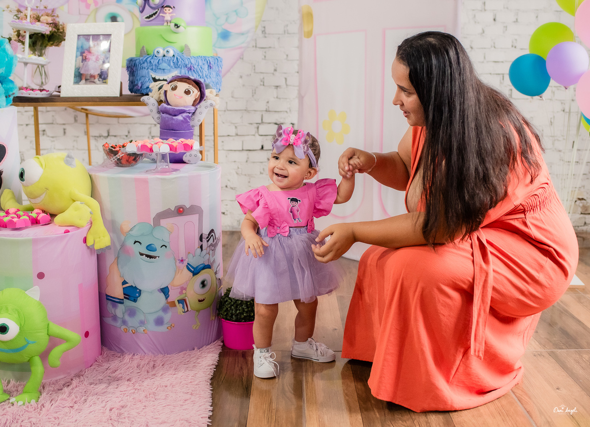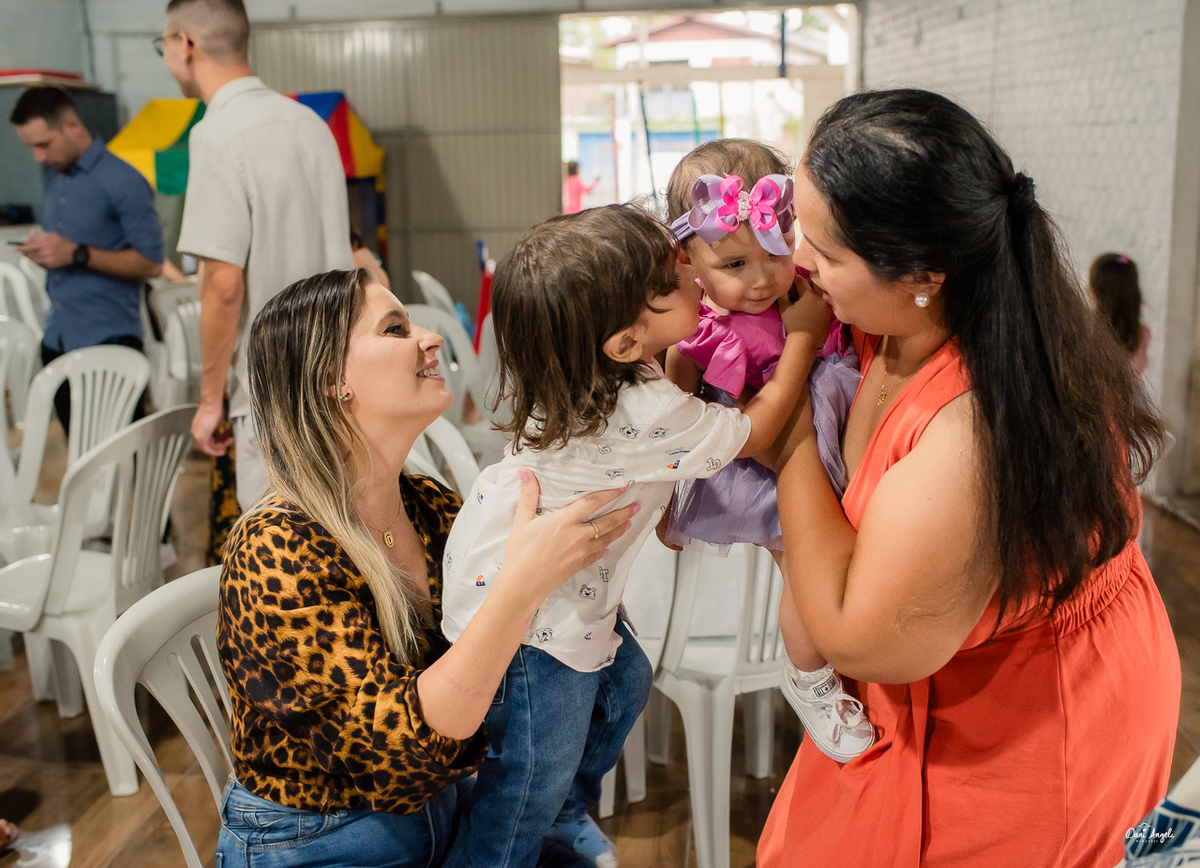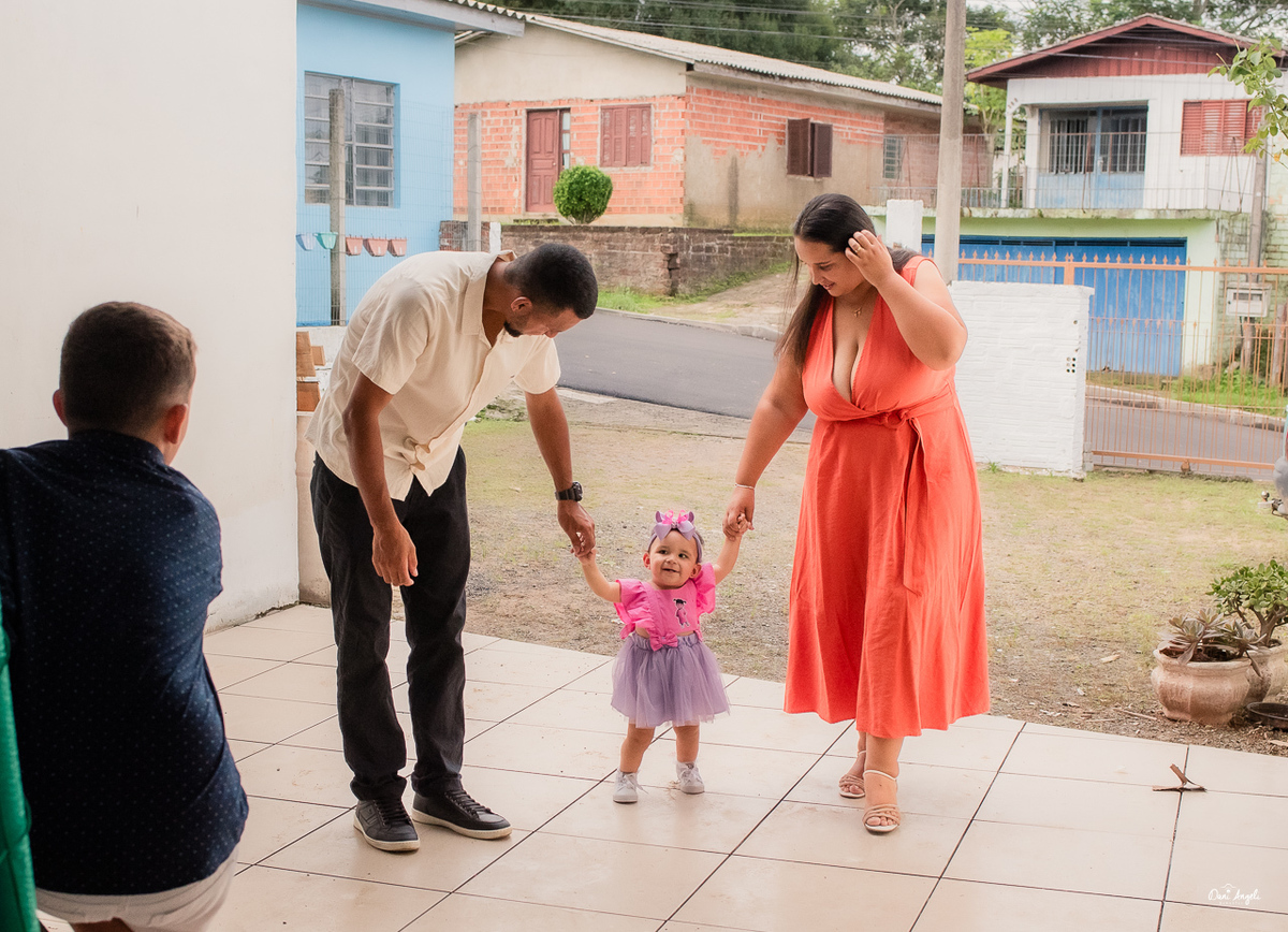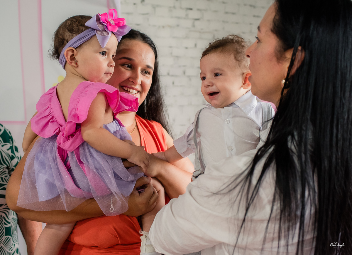 A Laura estava radiante, aproveitando cada momento da festa e distribuindo sorrisos por onde passava. Sua energia contagiante a levou de colo em colo para as fotos, capturando momentos preciosos que serão guardados para sempre.