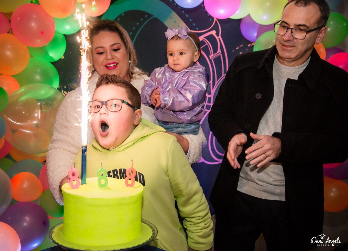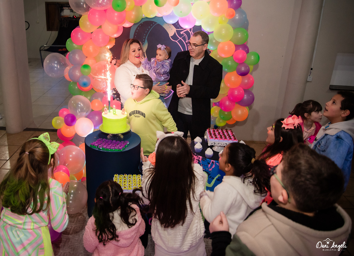 A Balada do Miguel foi um sucesso! Nosso querido Mig Mig escolheu uma festa noturna para comemorar seus 8 anos e o resultado foi simplesmente extraordinário. Com pista de LED, muitos amigos e uma energia contagiante, a balada estava pronta para agitar a noite!