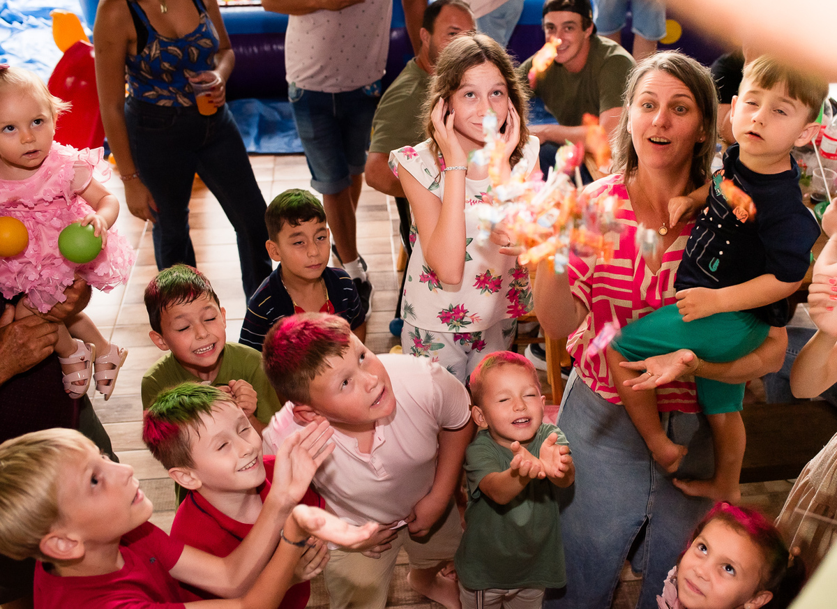 A festa foi animada do começo ao fim, com convidados se divertindo muito e um clima leve, cheio de carinho e alegria.