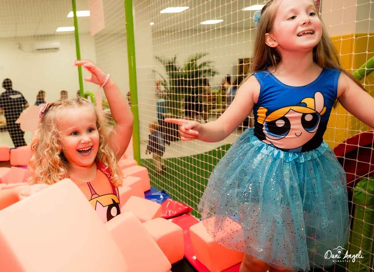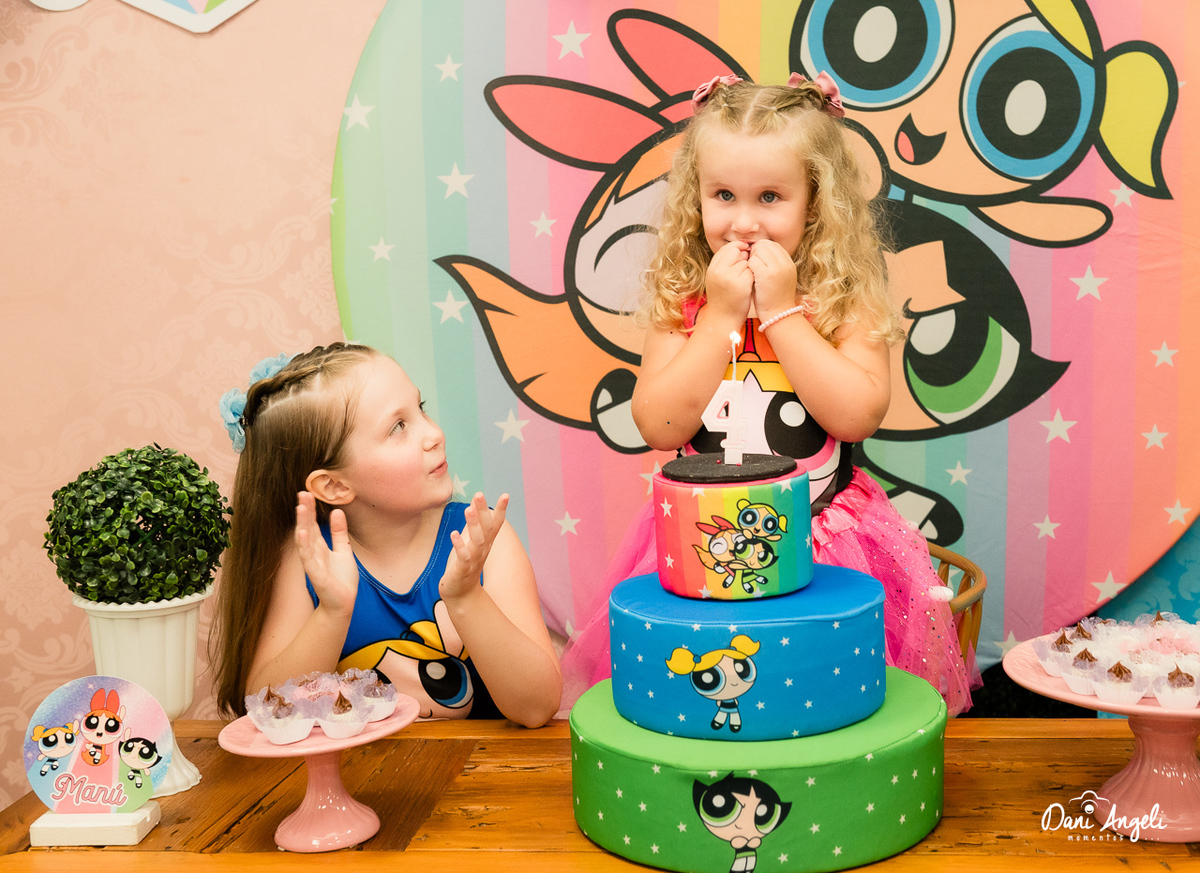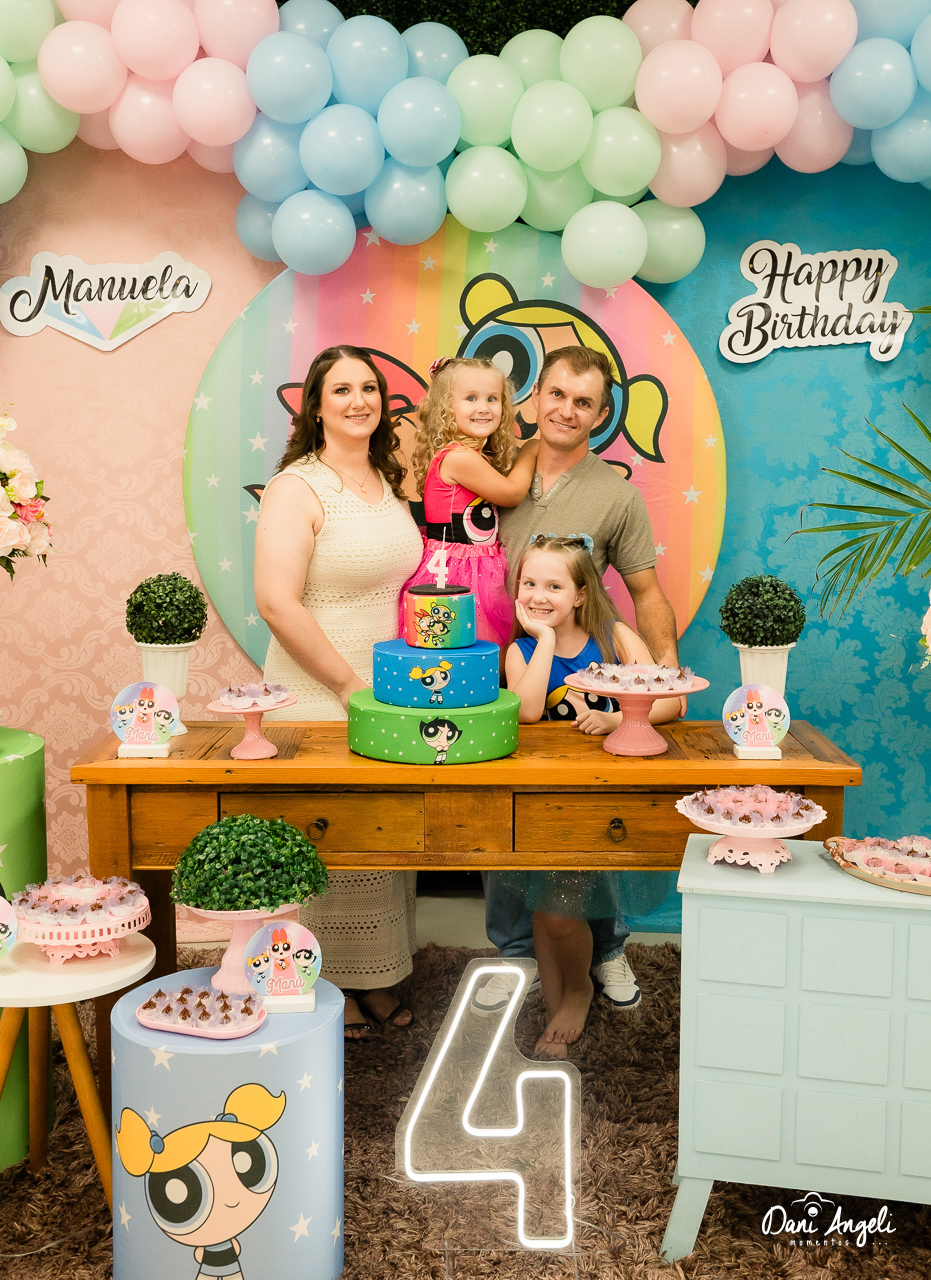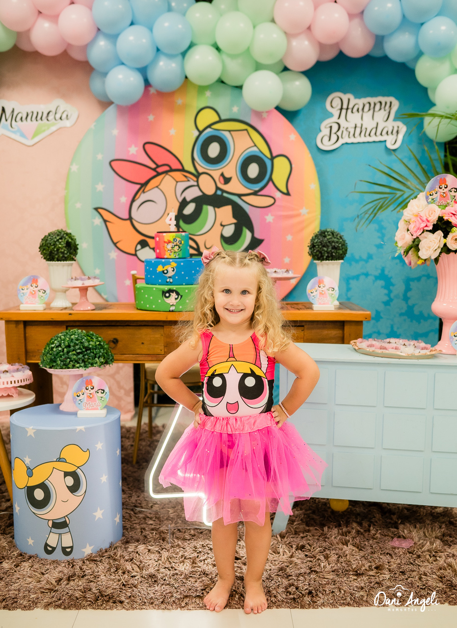 A festa aconteceu na incrível Casa de Festas Terra Mágica, em Maratá/RS, um lugar que já faz jus ao nome. E o tema? As Meninas Superpoderosas! 💥 A Manu estava a cara da Florzinha, a irmã Lu e a priminha Ágatha também entraram na brincadeira com suas fantasias encantadoras!