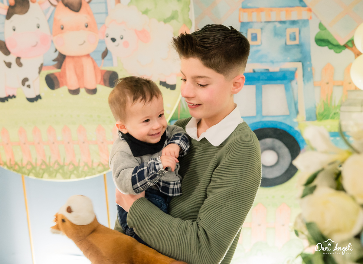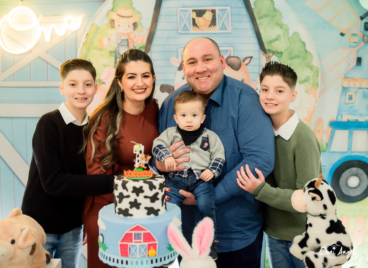 Sorrisos que encantavam, braços que nunca faltavam, porque de colo em colo o Lorenzo foi distribuindo amor. E os manos? Ah, esses não desgrudaram dele nem por um segundo, parceiros de todas as brincadeiras e responsáveis por tantas gargalhadas lindas.