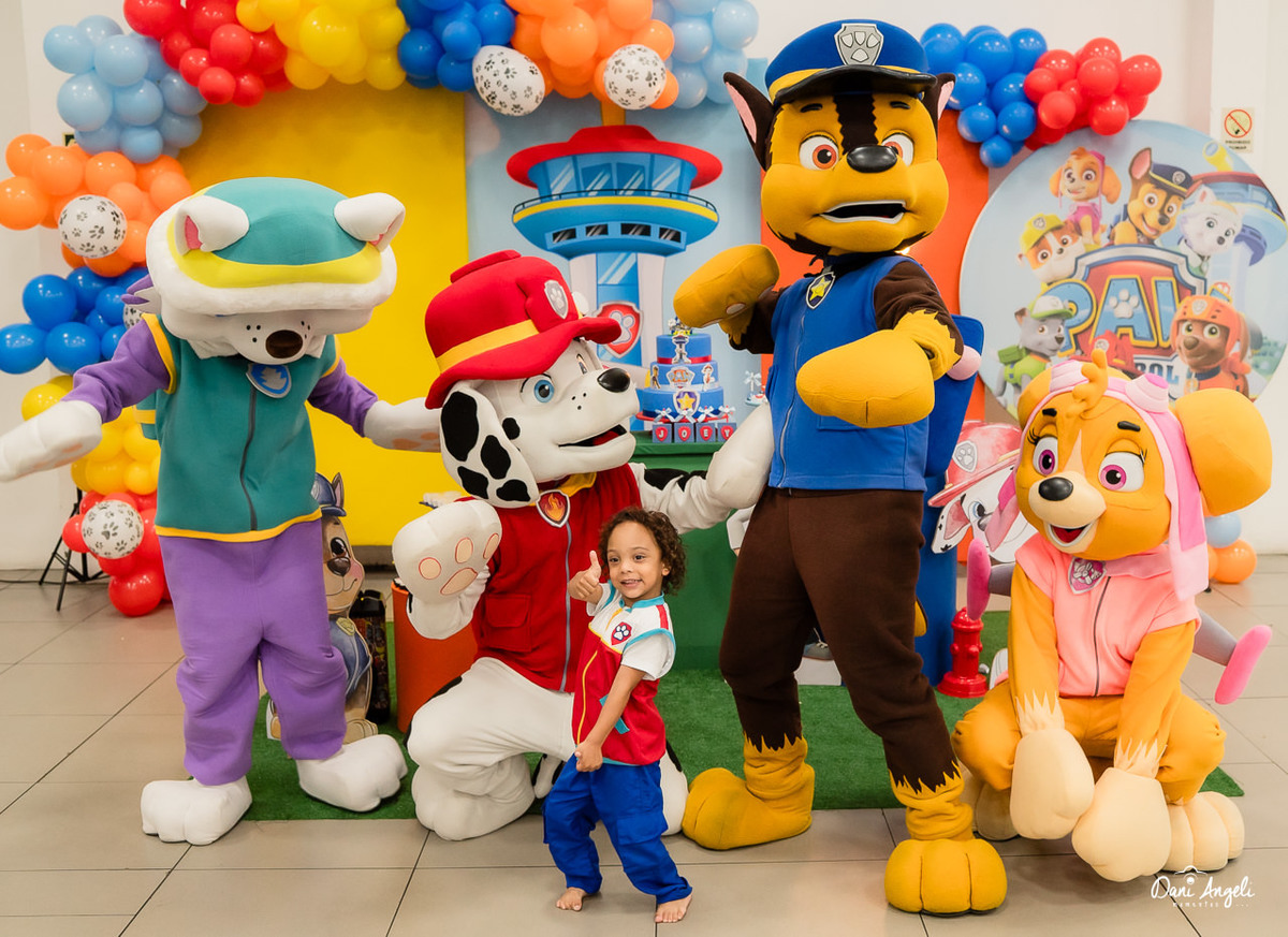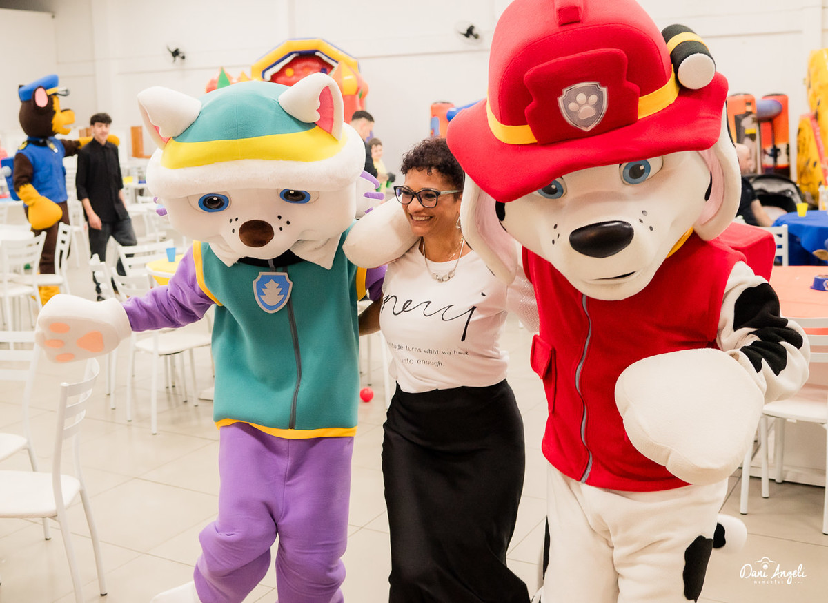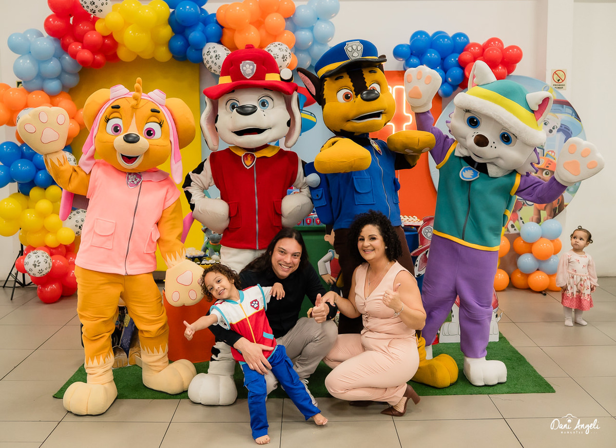 O Joey está naquela fase deliciosa da Patrulha Canina, ama de paixão. E a surpresa do dia foi daquelas que fazem o coração apertar: os personagens apareceram na festa. O sorriso dele, o brilho no olhar e a emoção estampada no rosto… foi impossível não se emocionar junto. 💛