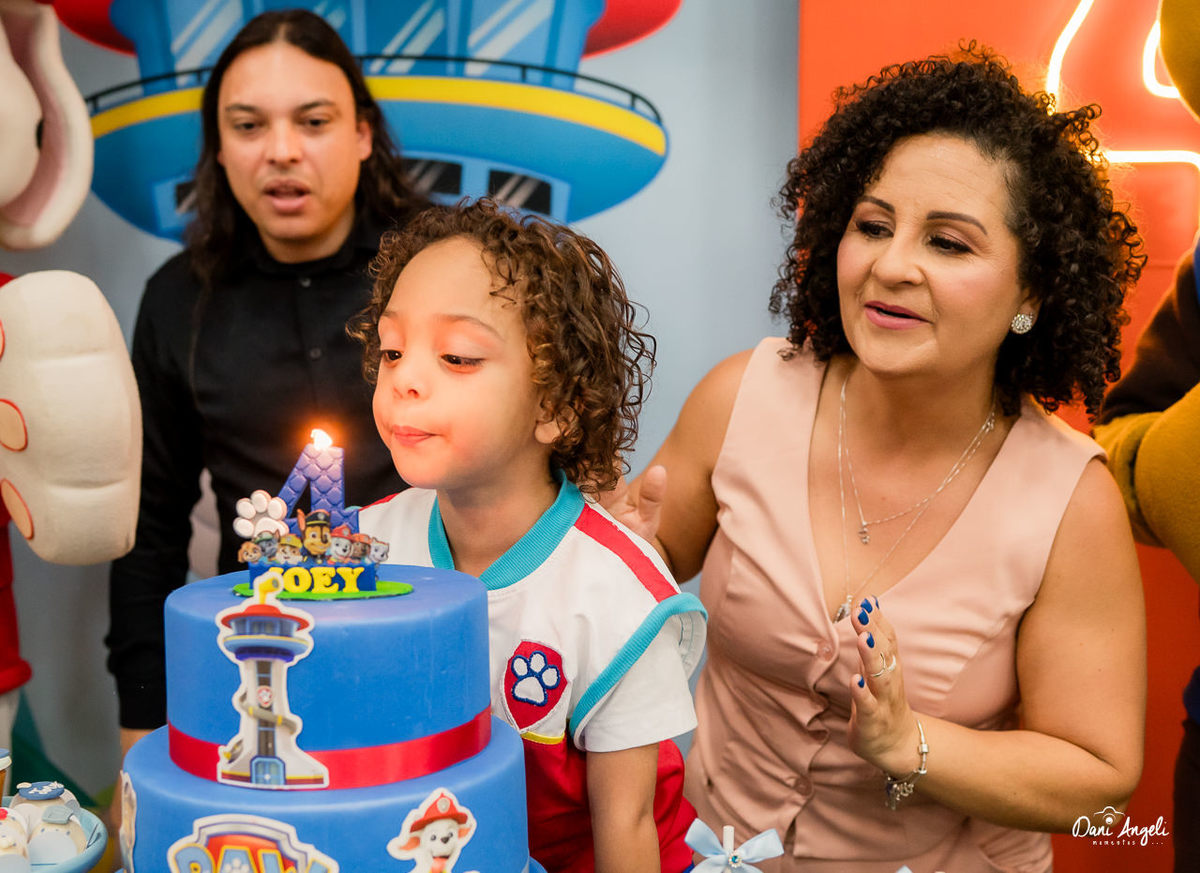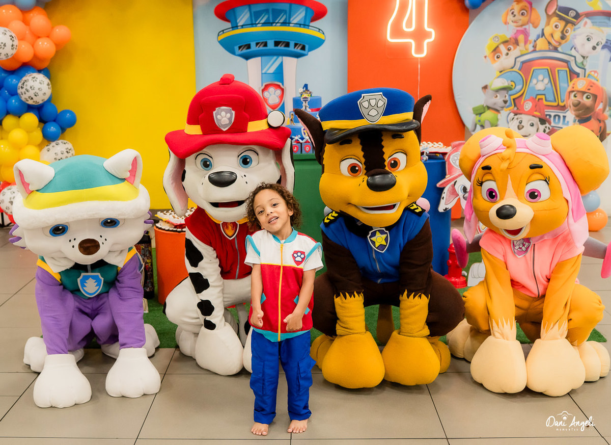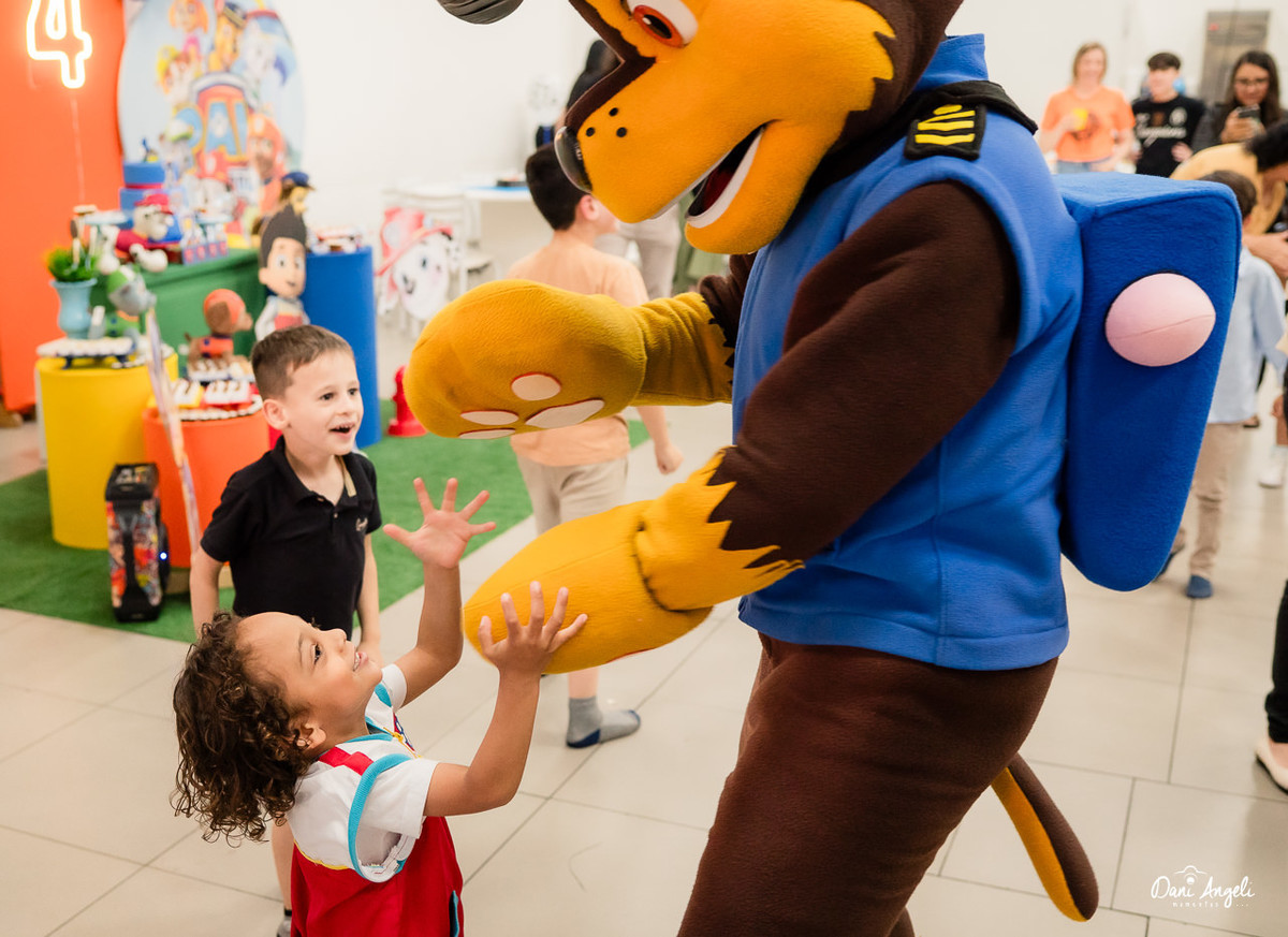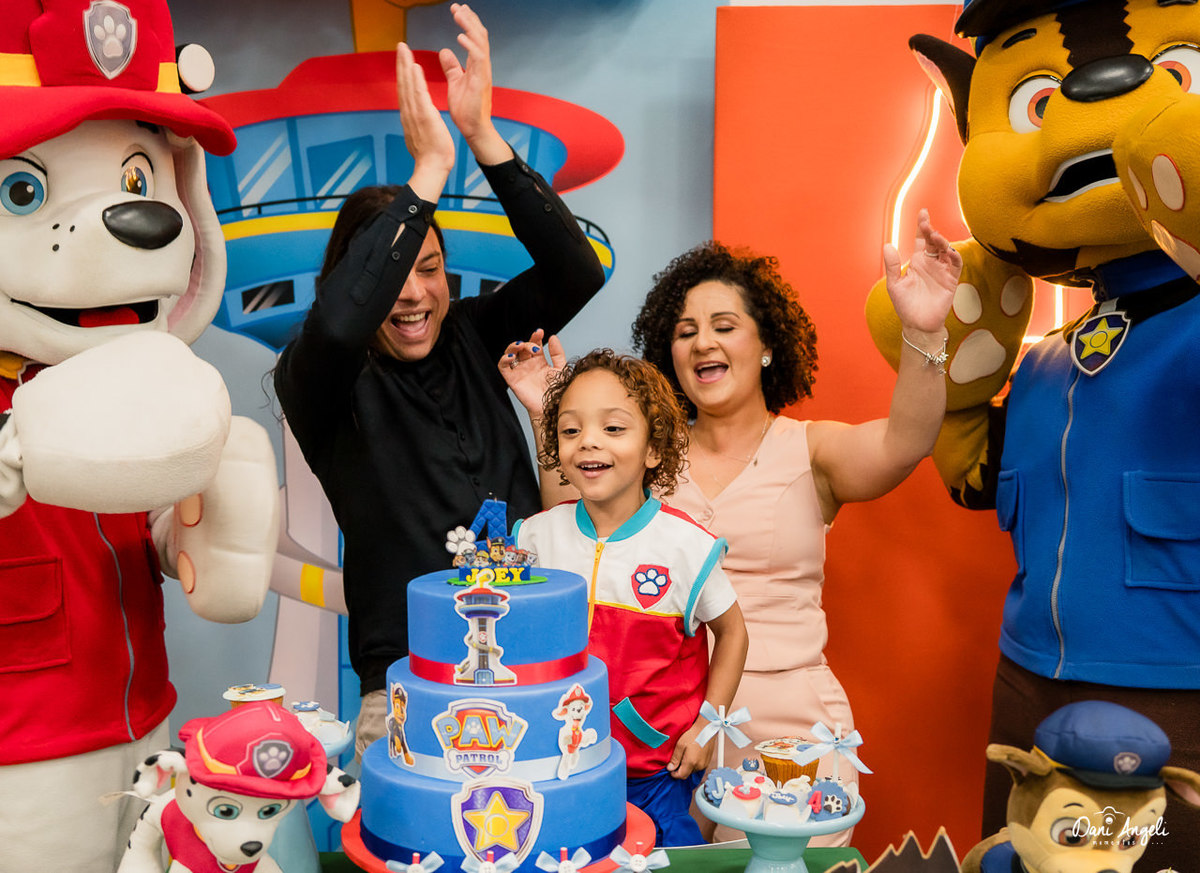 O Joey está naquela fase deliciosa da Patrulha Canina, ama de paixão. E a surpresa do dia foi daquelas que fazem o coração apertar: os personagens apareceram na festa. O sorriso dele, o brilho no olhar e a emoção estampada no rosto… foi impossível não se emocionar junto. 💛