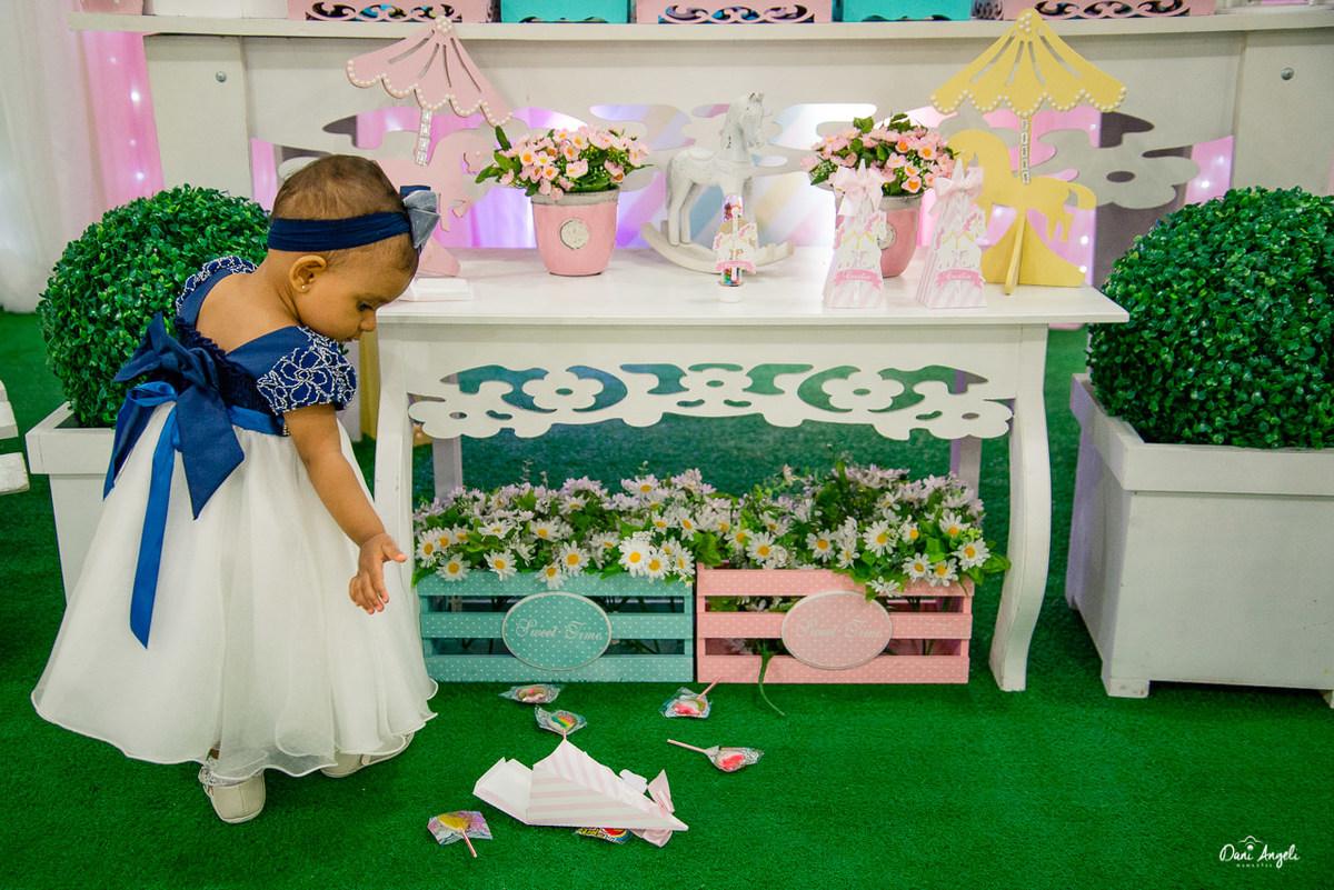 A festa de carrossel foi linda, a Cecília adorou. Curtiu seus amiguinhos e parentes.