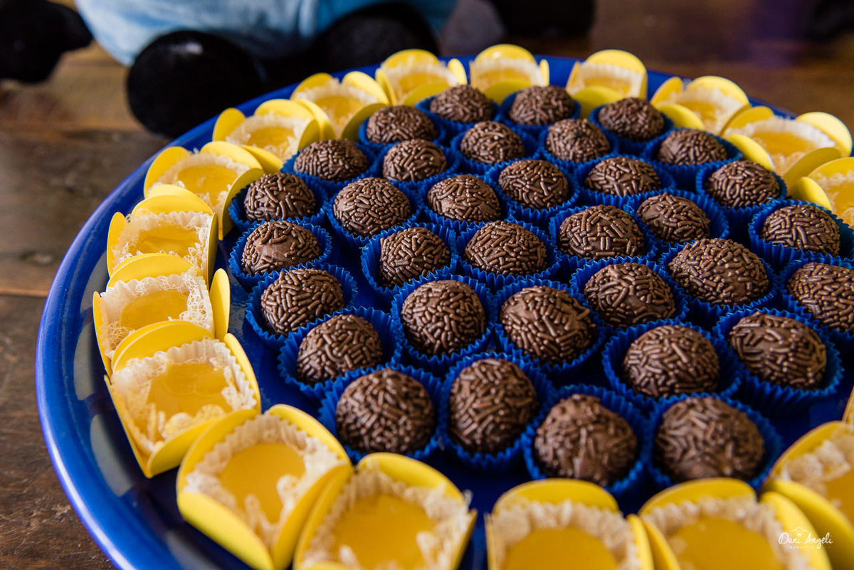 A festa estava linda, foi divertida, com muita coisa boa e alegria.