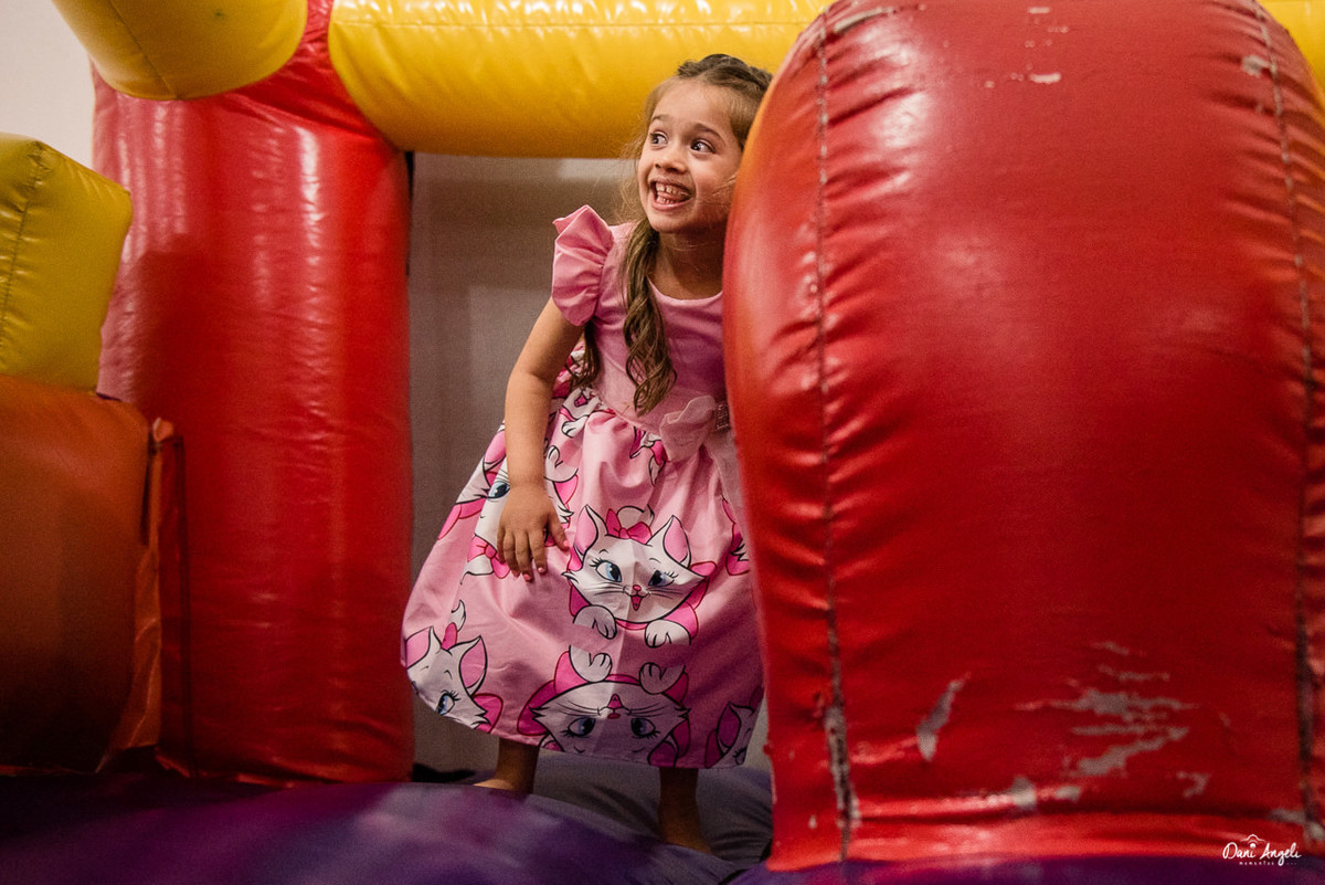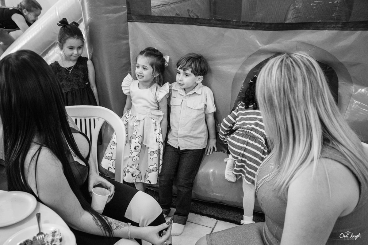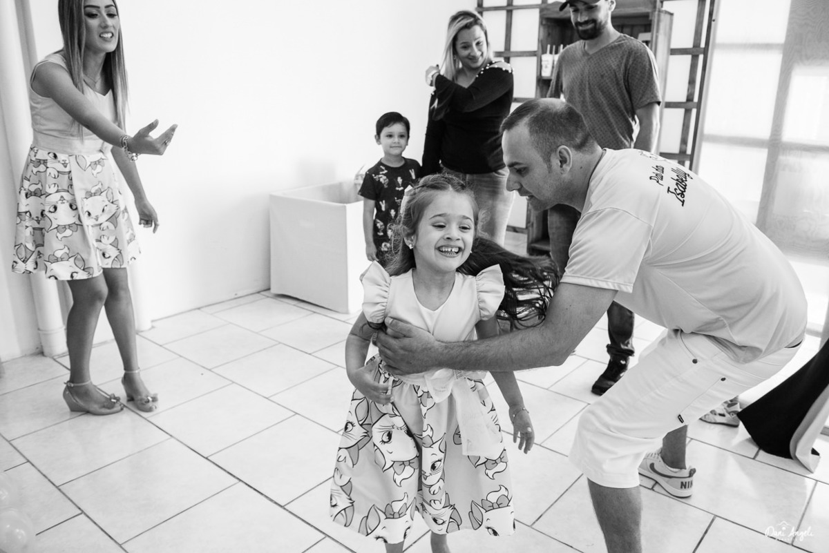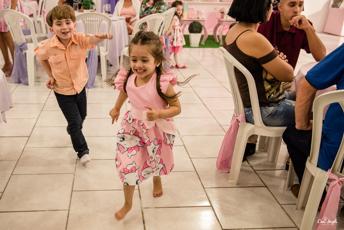 A Isabelly estava super disposta, recebeu e cumprimentou todos os seus convidados, deu abraços nos amiguinhos e saía correndo para brincar. Afinal de contas, já havia cumprido seu papel.
