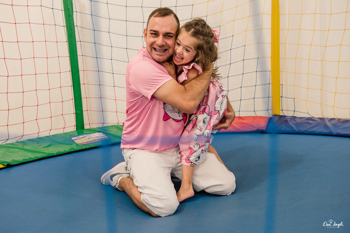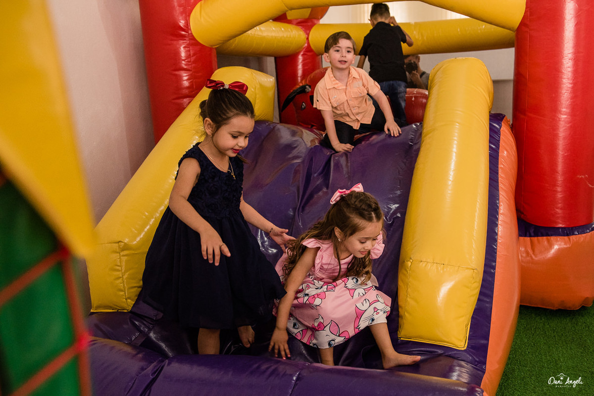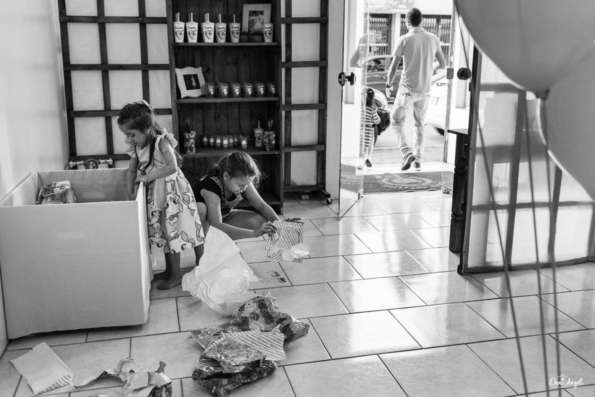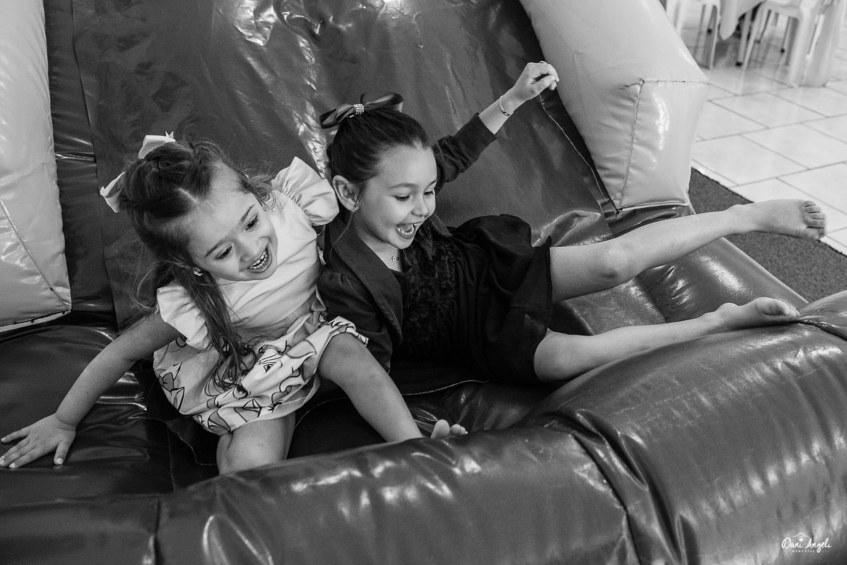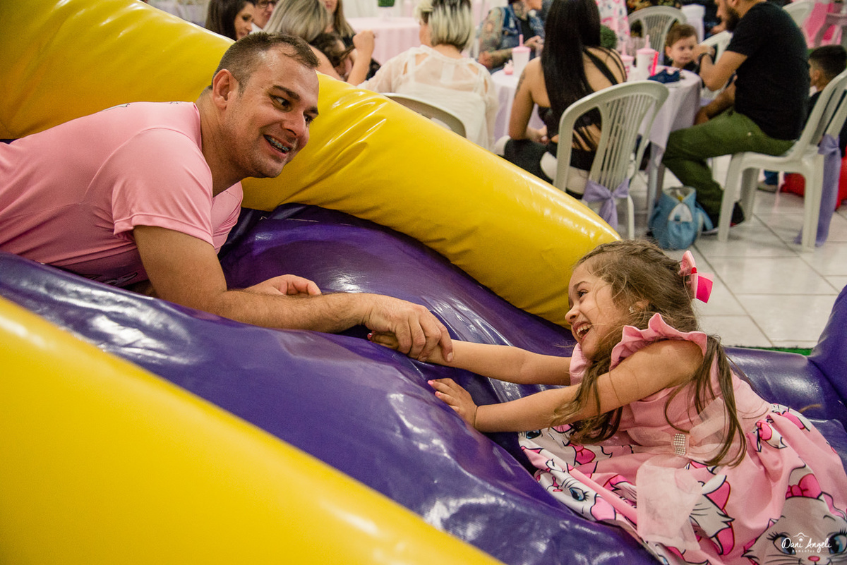 A Isabelly estava super disposta, recebeu e cumprimentou todos os seus convidados, deu abraços nos amiguinhos e saía correndo para brincar. Afinal de contas, já havia cumprido seu papel.
