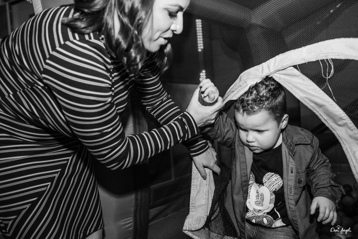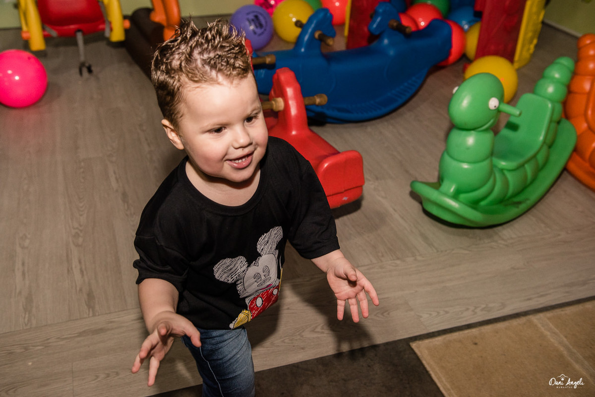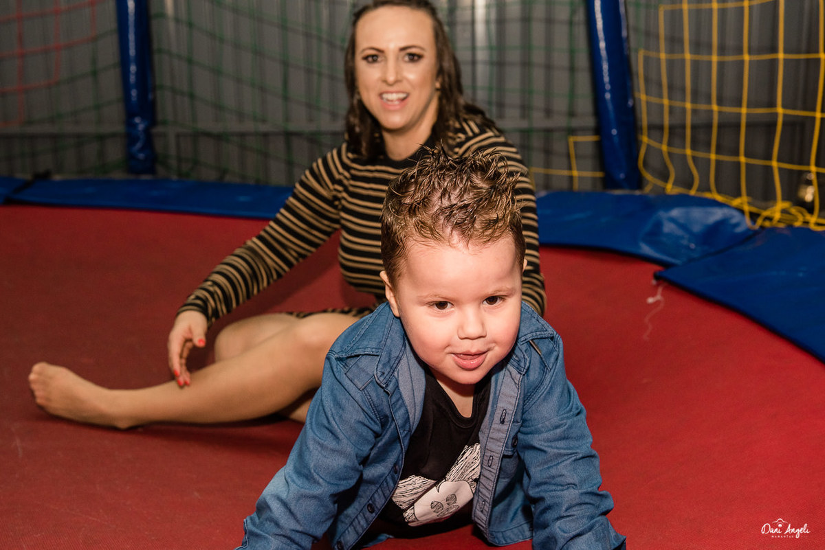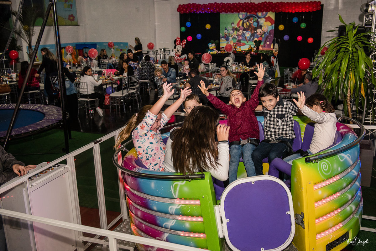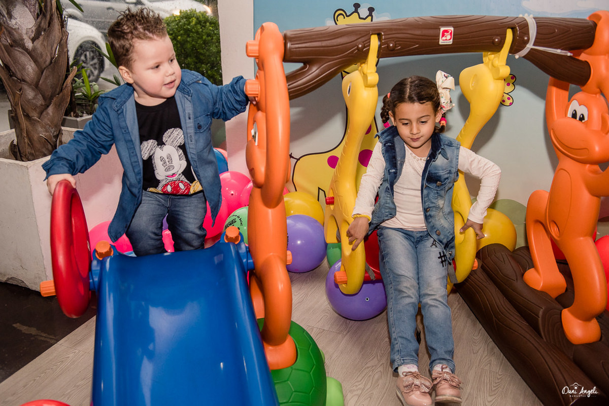 O Mig não parou nenhum minuto, chegou e já saiu correndo para a brincadeira. Muitos sorrisos, pulos e giros. Todos com parceria, ou da mamãe, papai, dinda. Aos poucos seus convidados foram chegando e tomando conta do espaço.