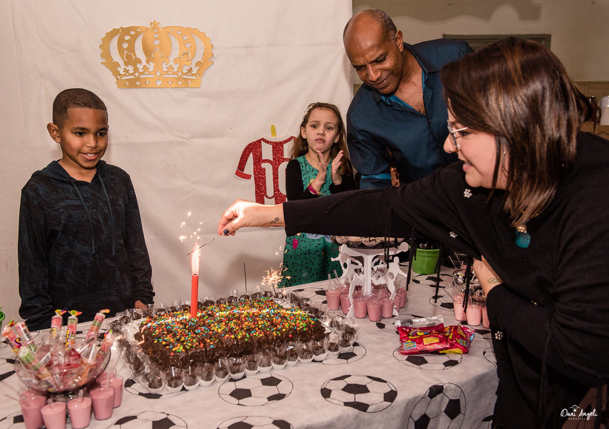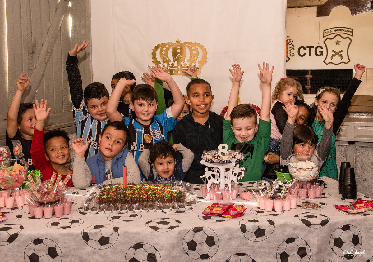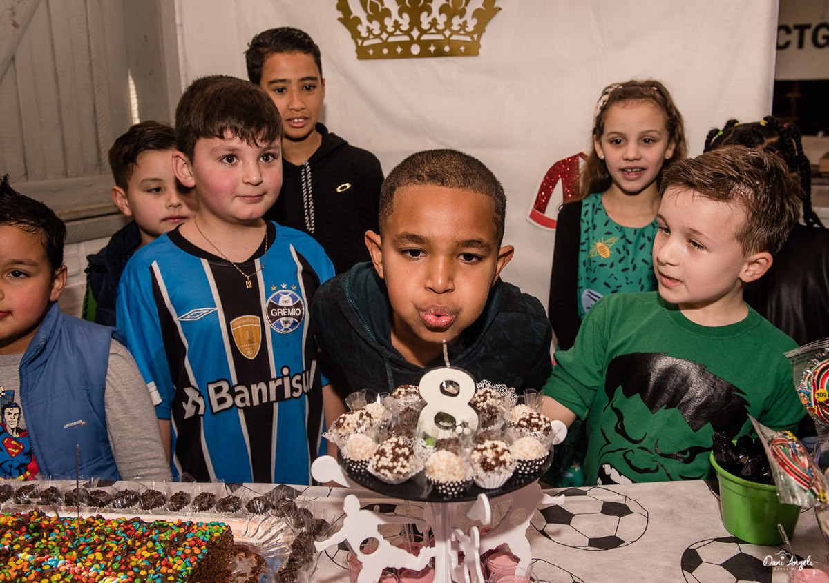Ainda mais quando todos seus amigos são convidados, tem muito doce, brincadeiras e termina com um futebolzinho.