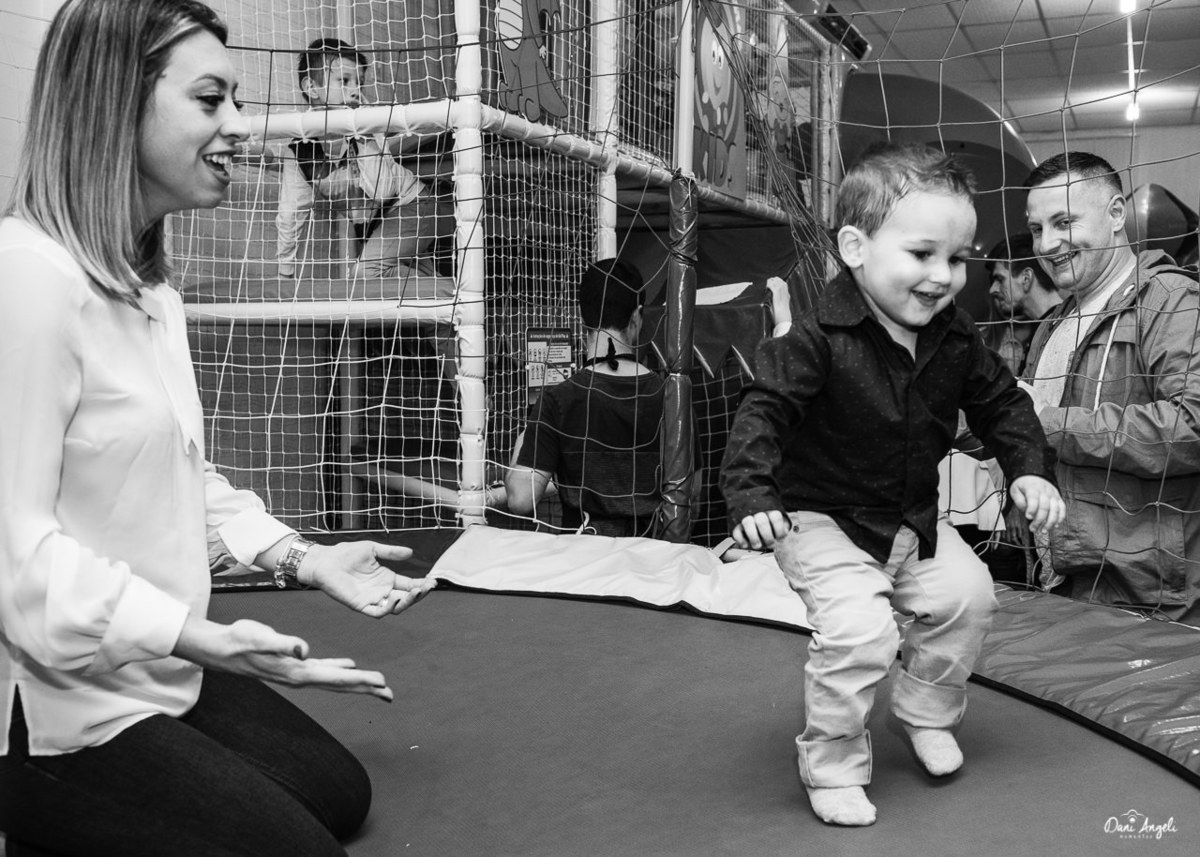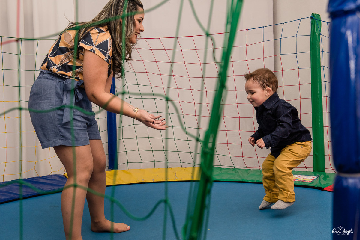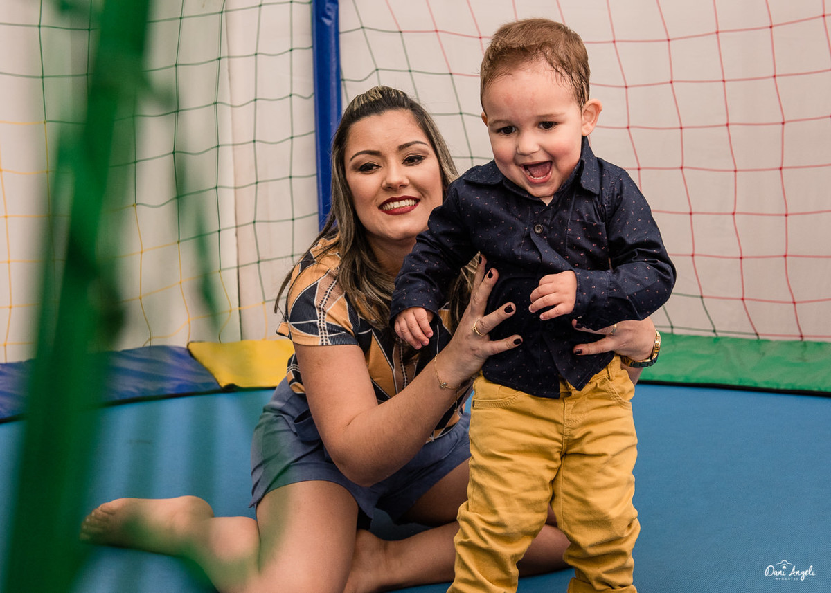 A festa do Pedro estava muito legal. Ele estava mais livre, pode correr, brincar, pular no pula-pula. Isso tudo sozinho. Com 2 anos a criança já tem muito mais independência. Entende melhor porque tem tantas pessoas no mesmo lugar. E se diverte muito com os amigos e parentes.