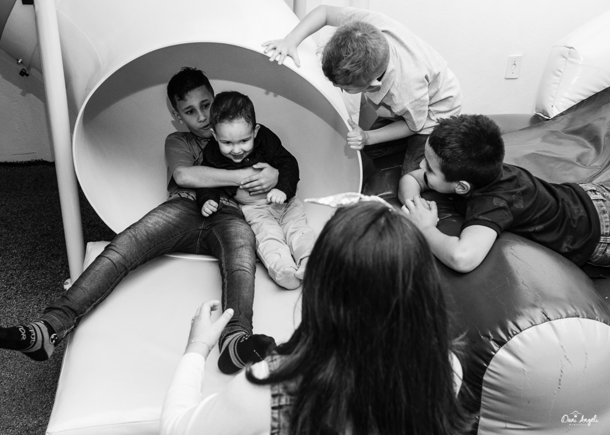 E claro, o brinquedo maior e mais rápido é o que mais amam. Para o Pedro isso não foi problema, porque ele tem os melhores primos do mundo, e sempre tinha um juntinho dele para descer do escorrega super rápido.