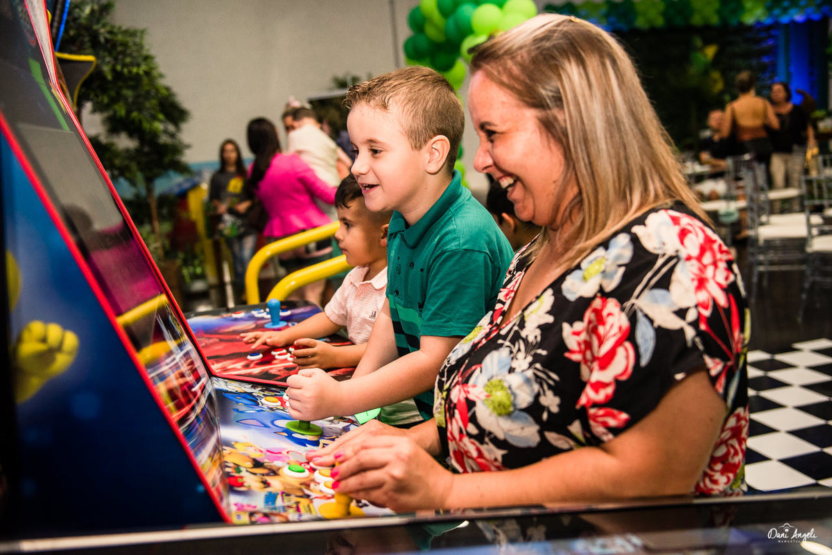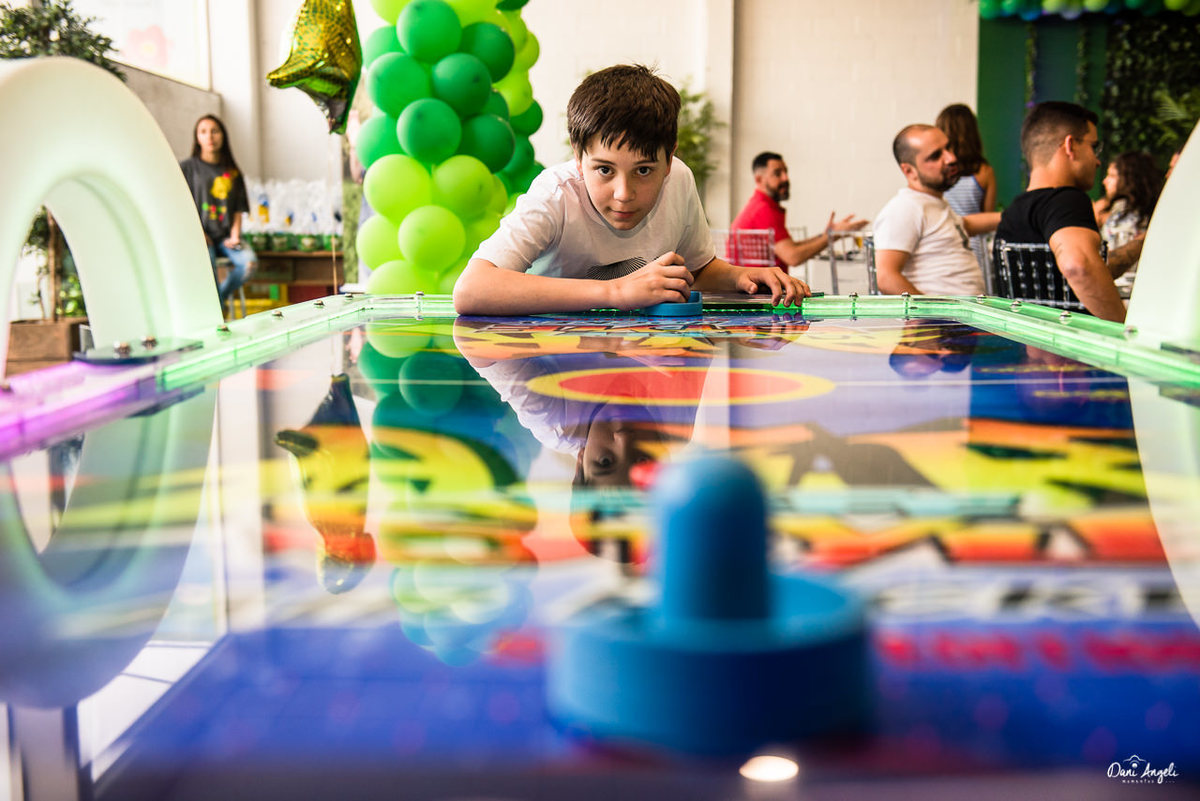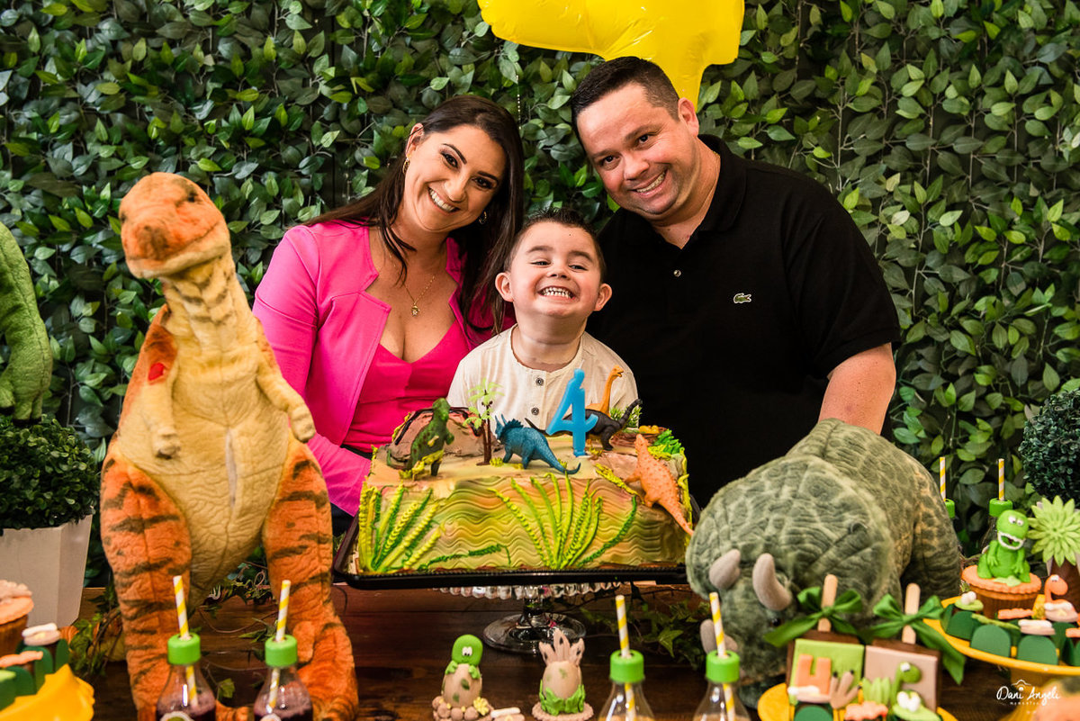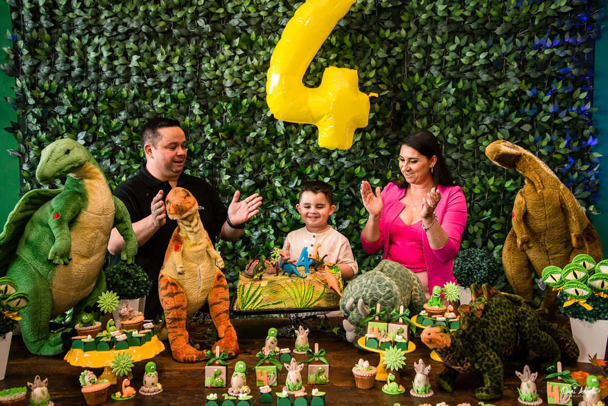 A decoração, foi a escolha do Anthony, Dinossauros. E ficou perfeita. Todos os detalhes, os decorados, as mesas, estava realmente lindos.