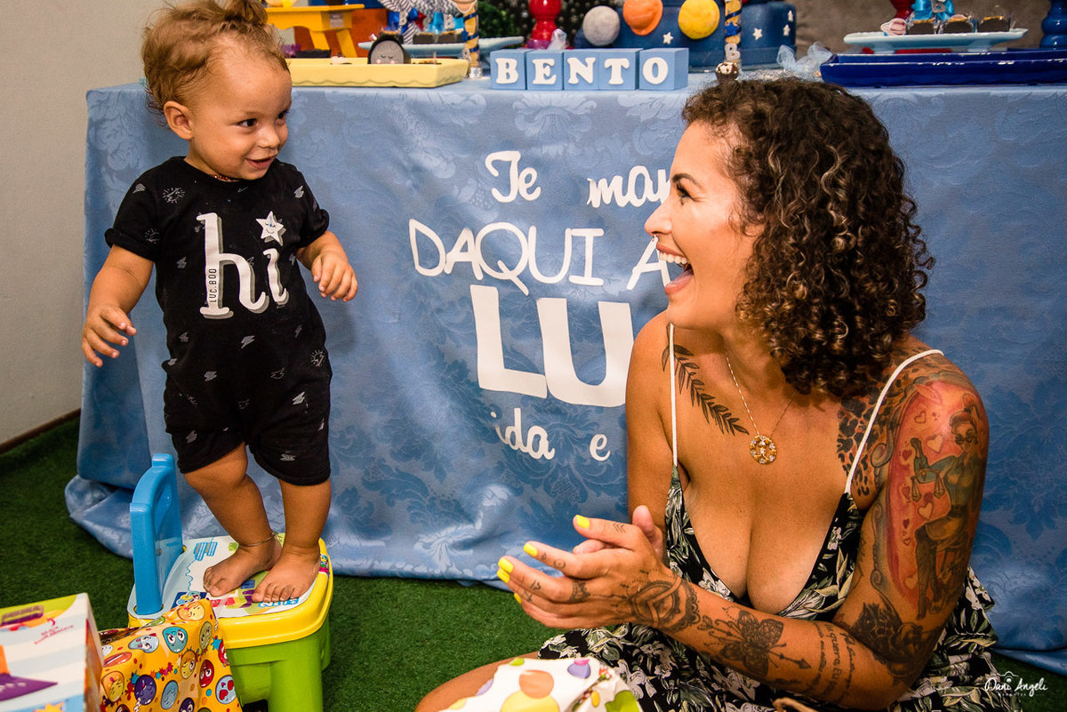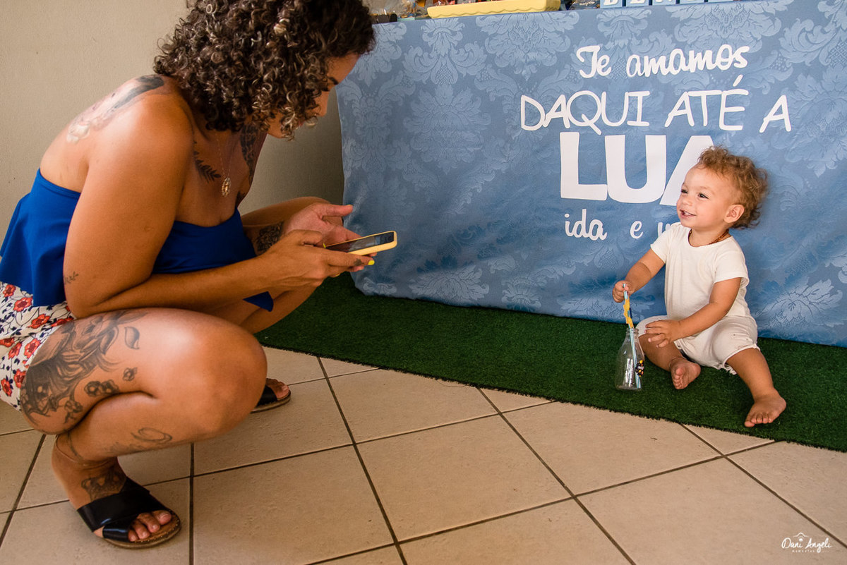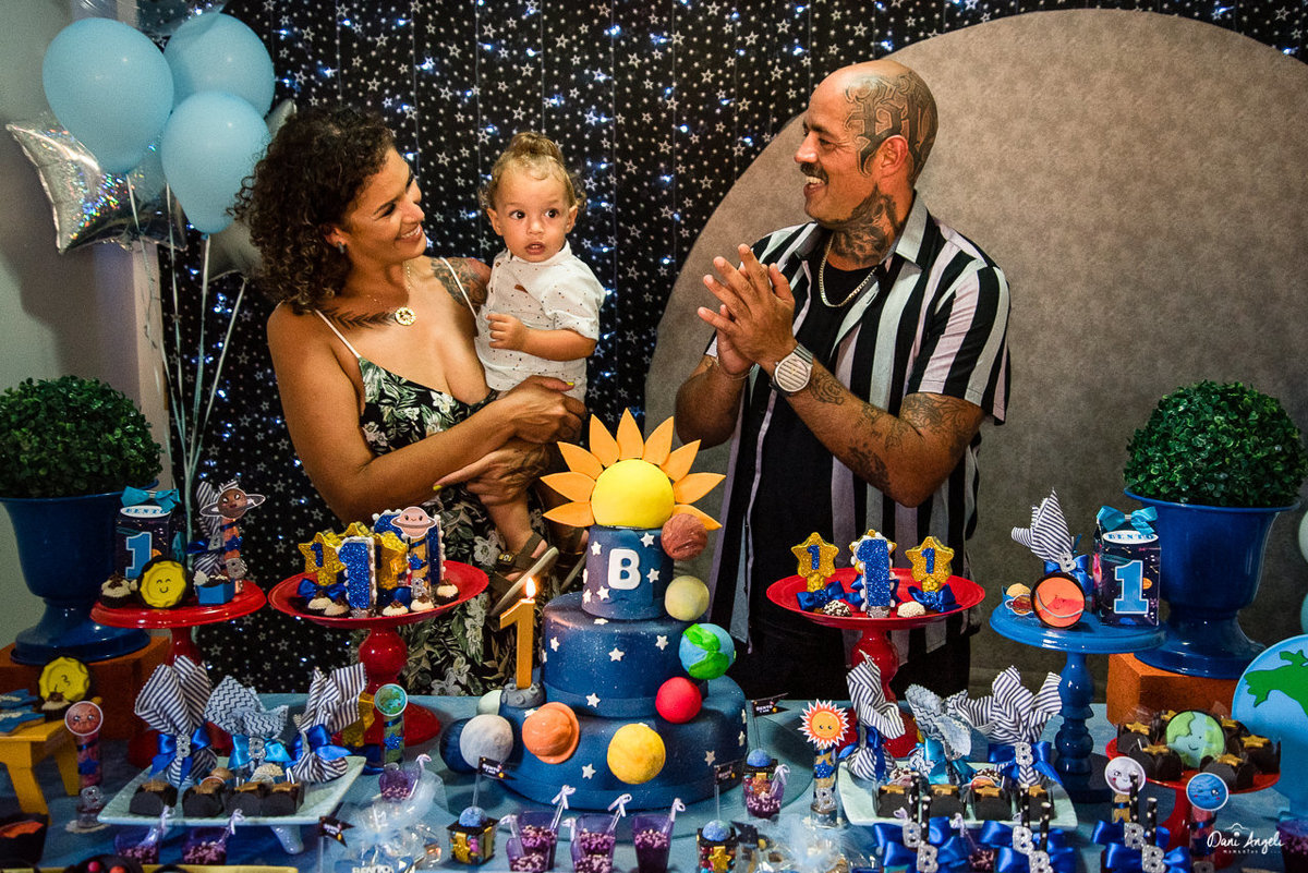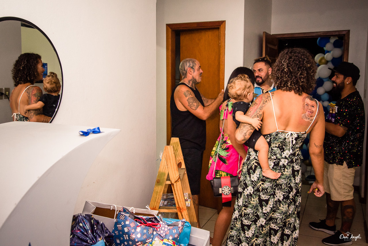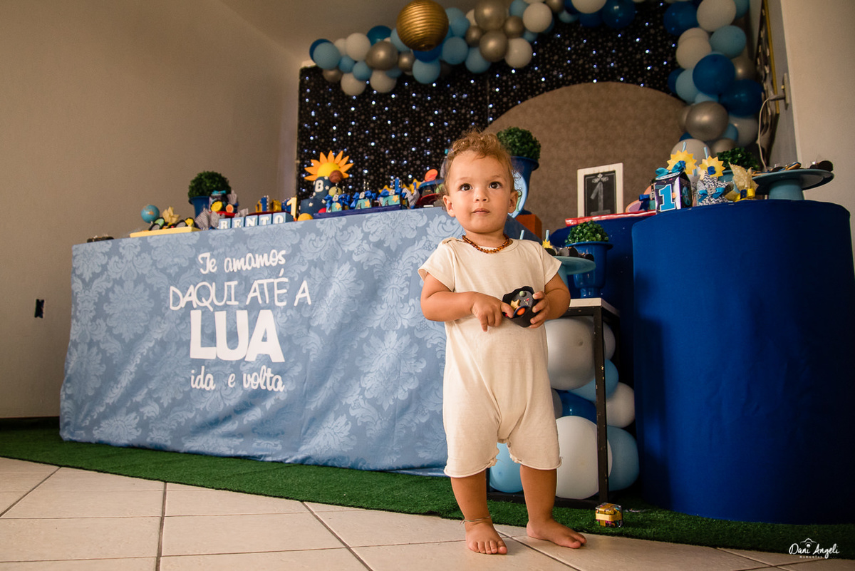 Para o seu primeiro aninho, não poderia ser diferente. Cenário super diferente. Festa em casa. Convidados super envolvidos e felizes.