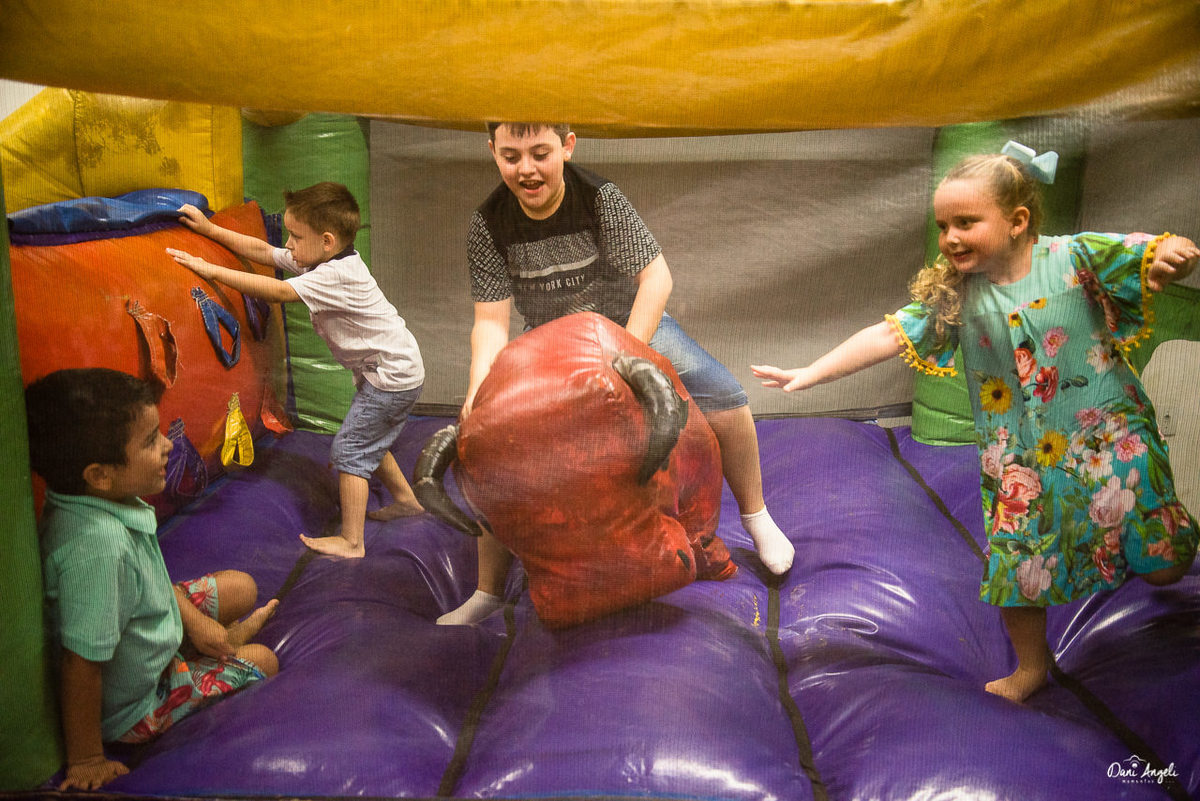É simples, a gente adora participar de festa com pessoas que se divertem, independente se for dançando, bebendo, ou entrando nos brinquedos das crianças.