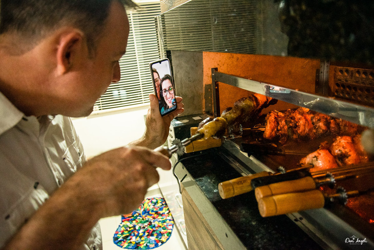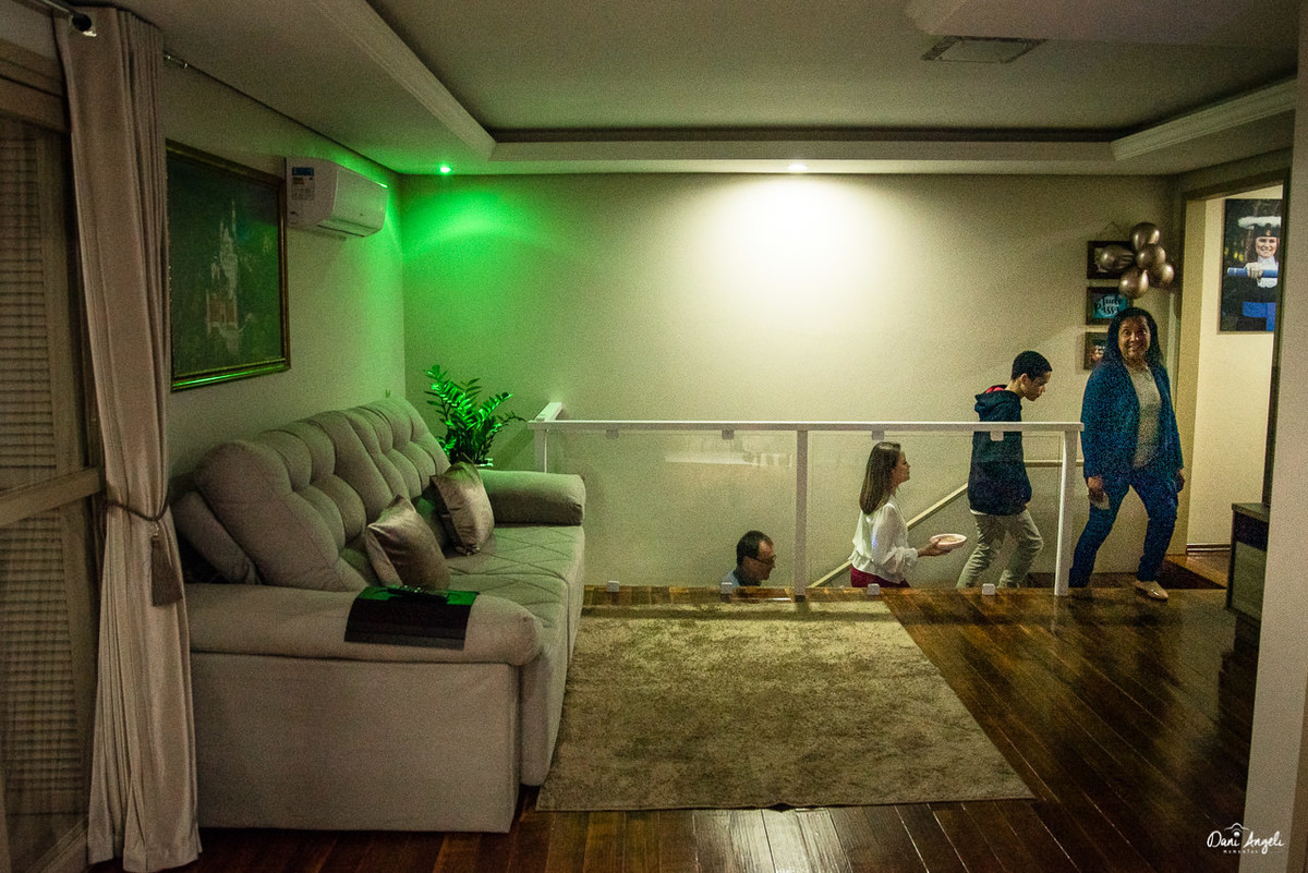 A festa foi em casa para poucas pessoas, mas quem disse que isso quer dizer que a festa foi triste.