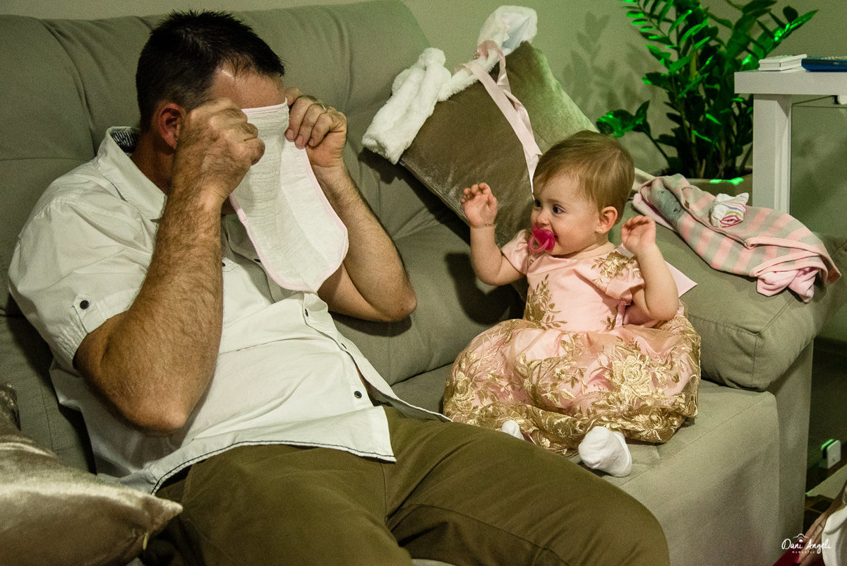 Festas em casa são ótimas, mesmo neste caso devido a pandemia sendo obrigatório, mas nós particularmente amamos. O ambiente já é conhecido pelos pequenos, eles realmente se sentem em casa pois ali estão. Tem seus brinquedos e todas as pessoas que amam em sua volta. Tudo fica mais tranquilo. E o legal é que conseguimos registrar todos os momentos. Aproveitamos um banho gostoso, a colocação da sua roupinha fofa, jantinha e tudo que a Isabela tem direito.