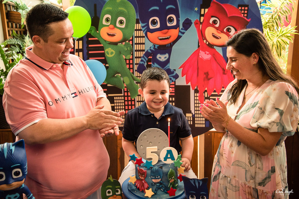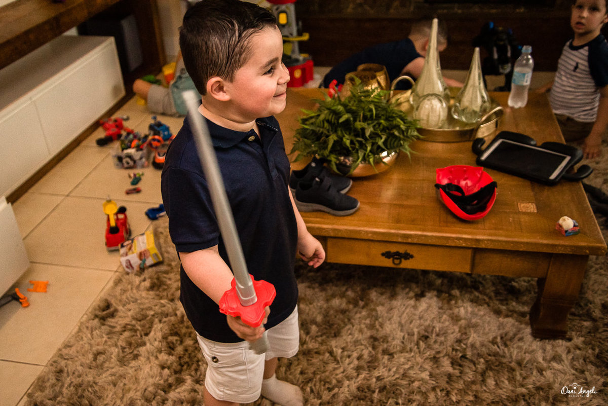 Desta vez a festa foi na casa dele. E por que deixaria de ser especial? Aliás foi muito mais especial. Ele amou estar em casa e ainda curtir a família.