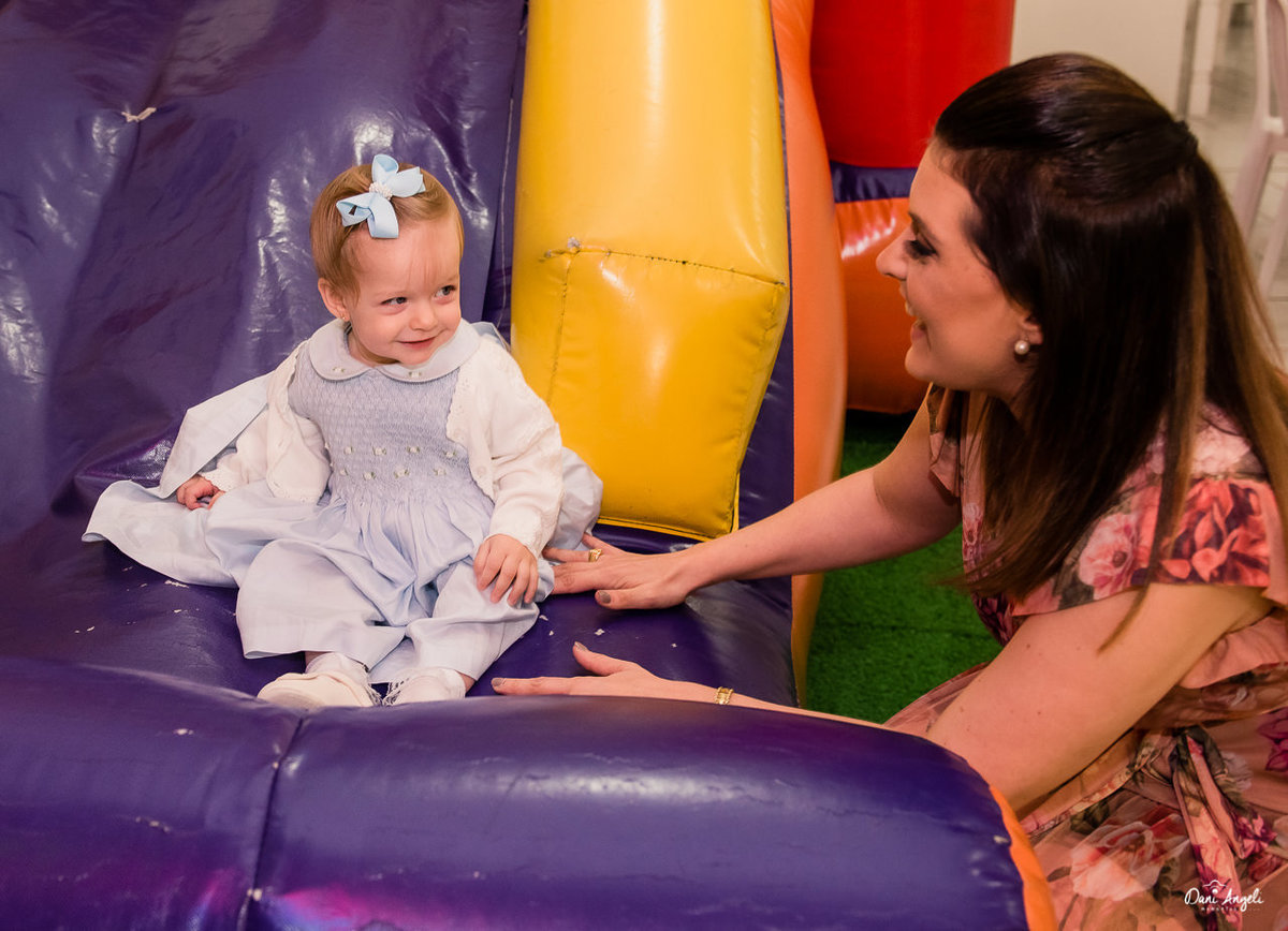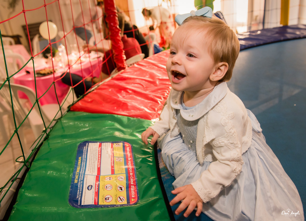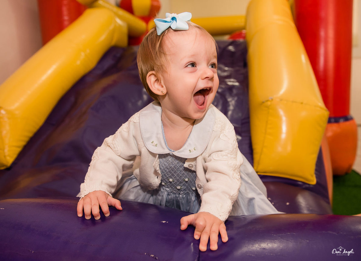 A Beatriz é super independente, fez amizade com os atendentes do espaço e amou poder brincar em todos os brinquedos.