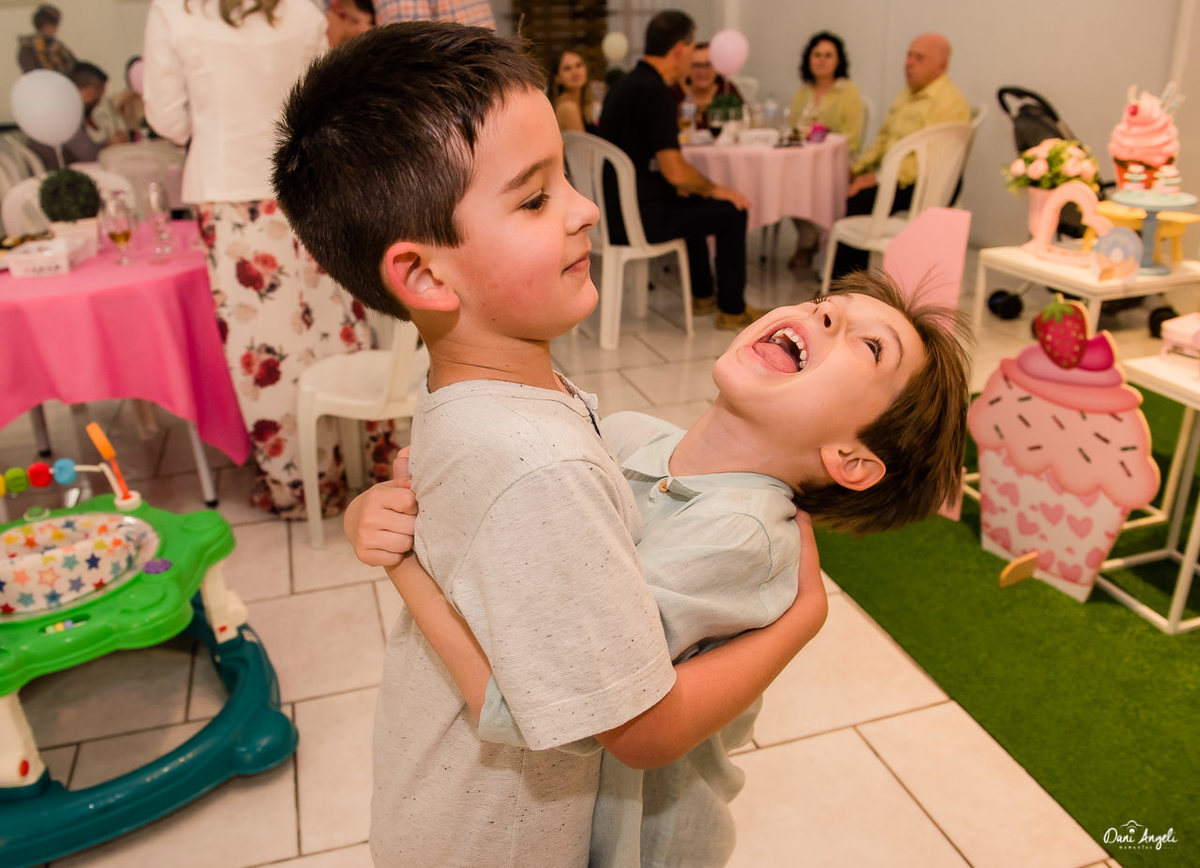 Recebeu sua família e amiguinhos. O mano também foi convidado e entre uma corrida e outra para um brinquedo passava pela mana e da um beijo ou fazia um carinho. São bastante unidos.