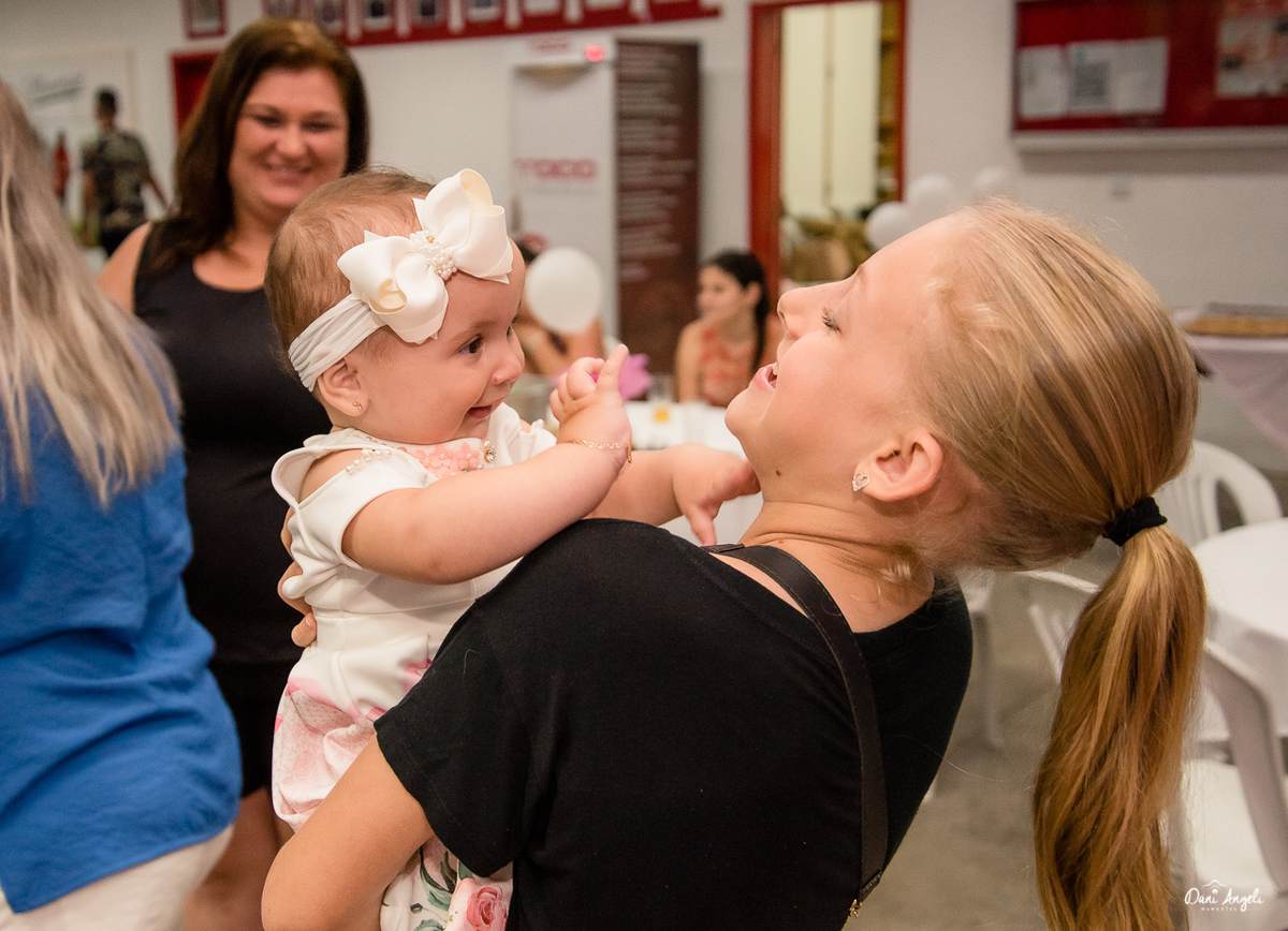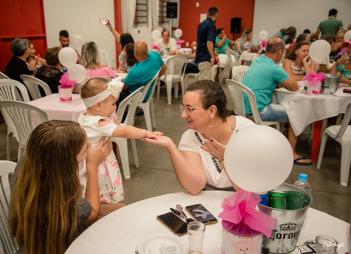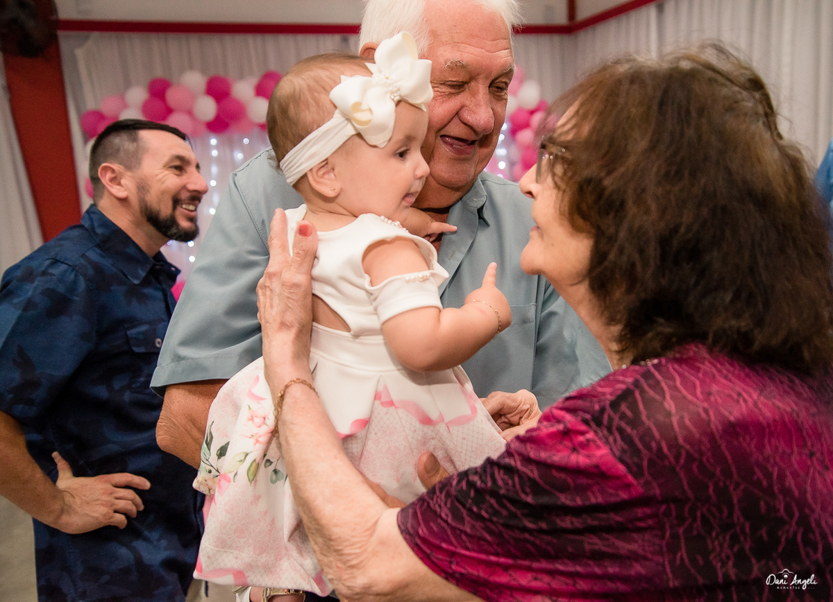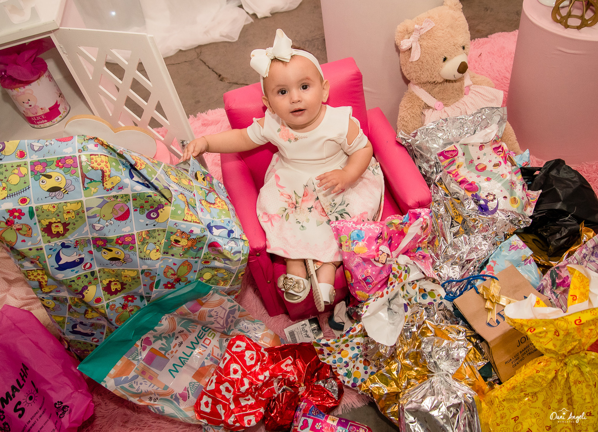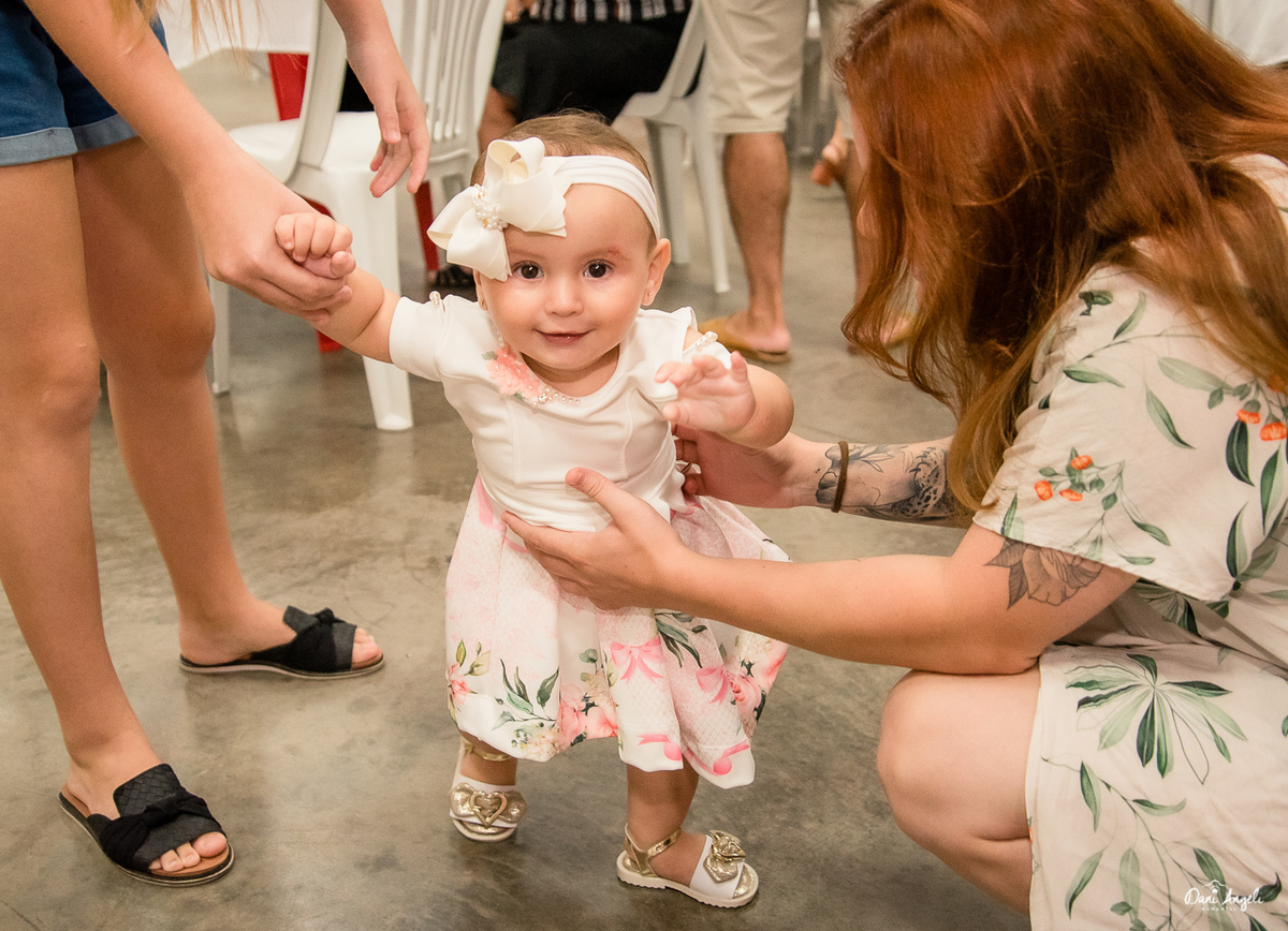 Ela aproveitou seu 1º aninho junto com um monte de gente que a quer bem. Cantou parabéns, passeios nos colinhos. E abriu seus presentes.