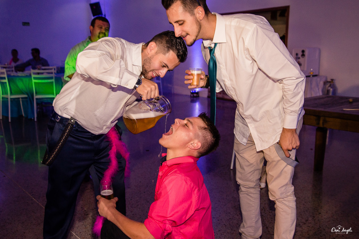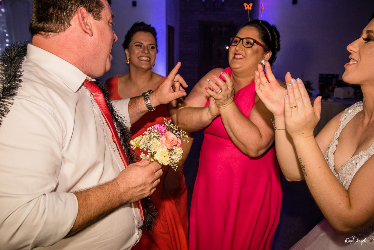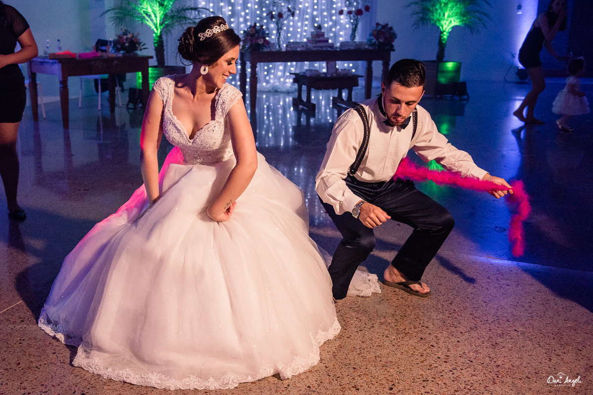 Foi uma festa animada, com muitos sorrisos e gente feliz. A noiva estava como princesa e o noivo, como príncipe, claro que até um certo ponto. Acompanhe nos registros. Rolou pés sem chinelo, calças dobradas e camisa pra fora. Clássico!
