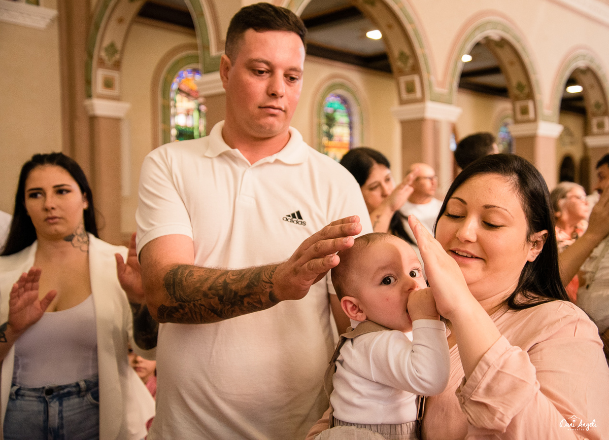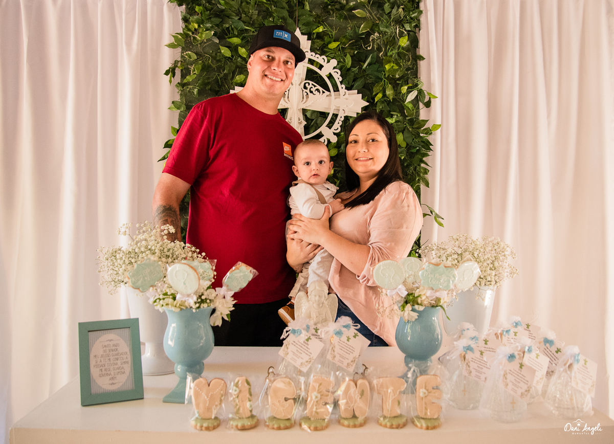 Ele se comportou muito bem, teve um chorinho, um mama, e até um soninho, mas nada que tirasse o brilho desse menino fofo e lindo. Depois do batismo, fotos com os familiares, e seguimos para a sua casa para recepcionar todos. Festa maravilhosa.