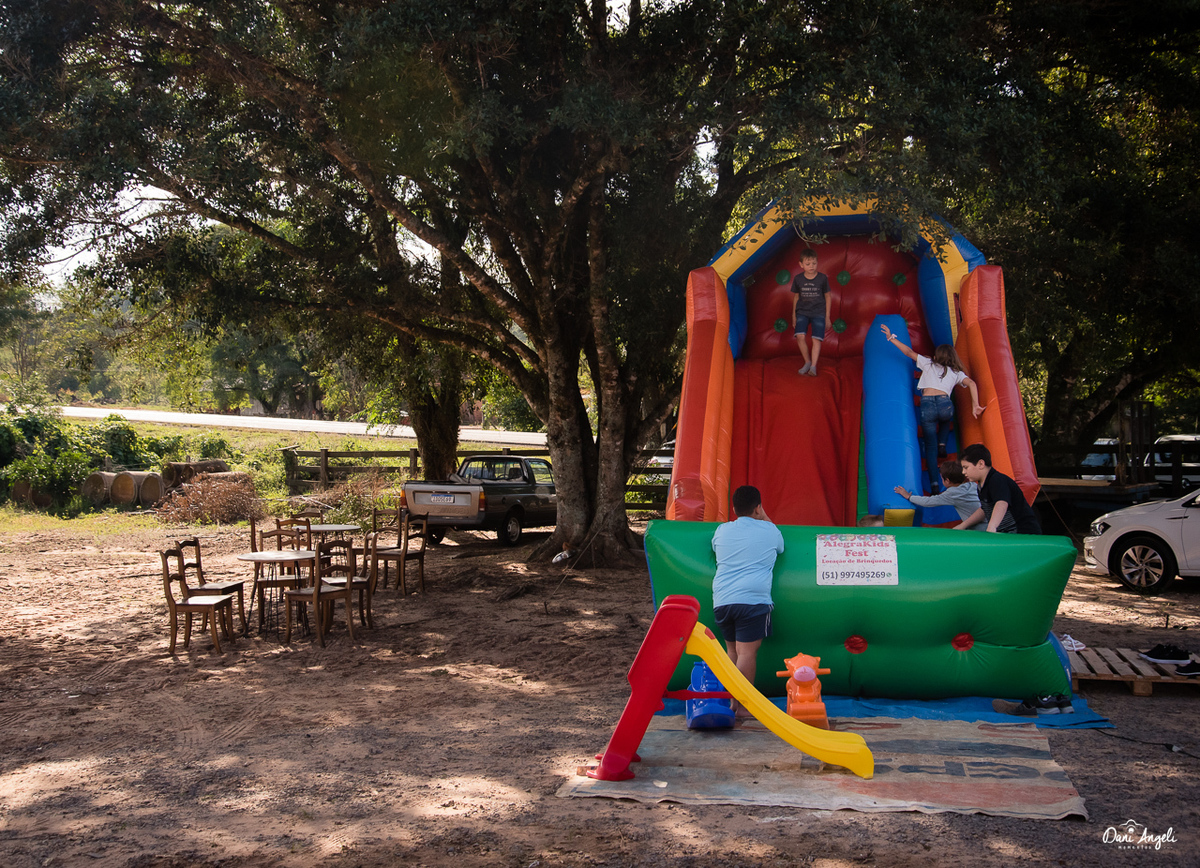 Era uma tarde de sol e alegria, com brinquedos para as crianças se divertirem, uma decoração encantadora, docinhos deliciosos e um churrasco caprichado.