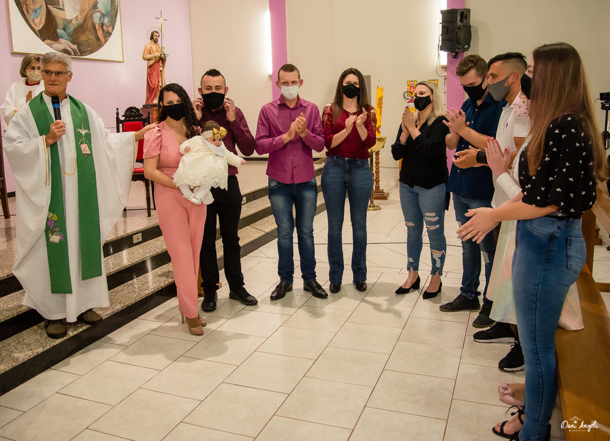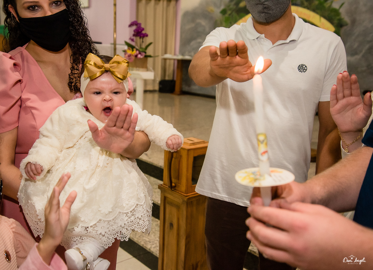Naquela noite a Manu e sua família participaram de um momento único, o batismo da pequena.