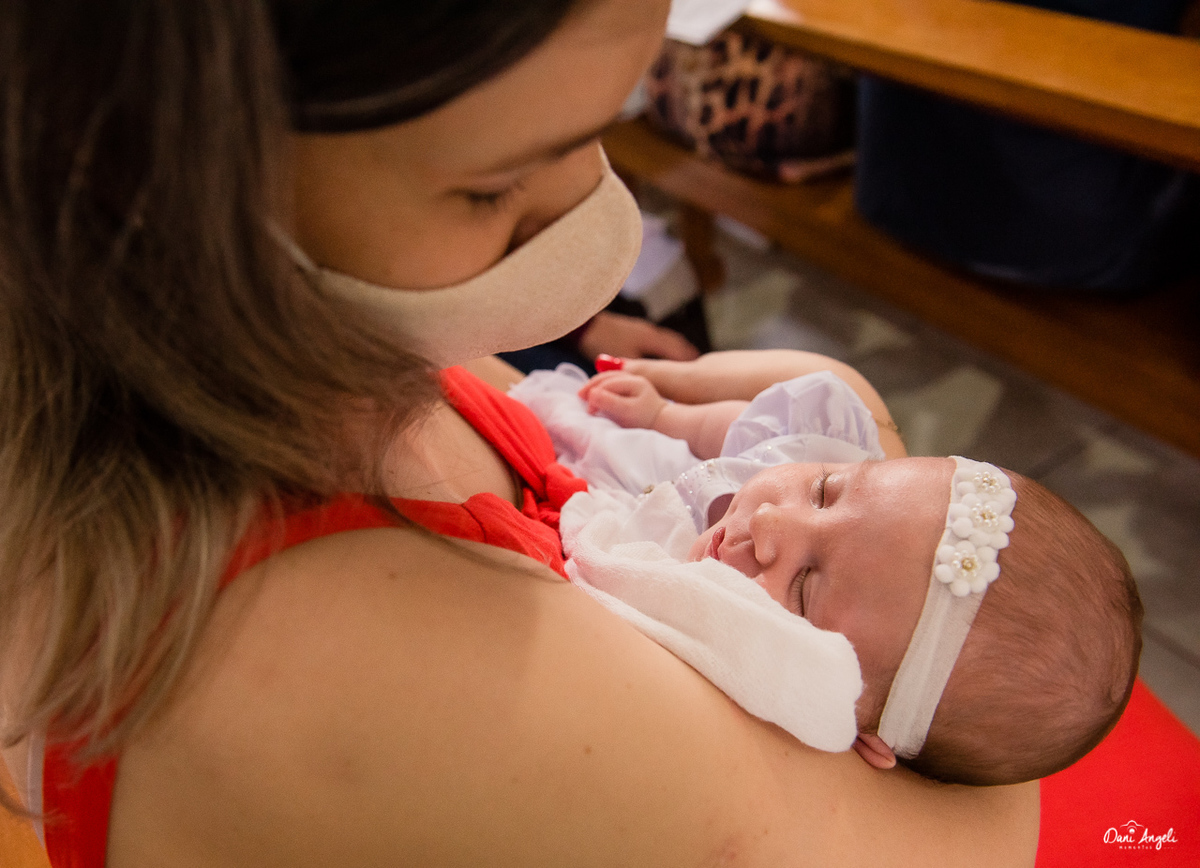 Ela mocinha comportada, estava bem tranquila durante toda a celebração. Claro que tivemos momentos em que queria um colinho nanado e um mamazinho.