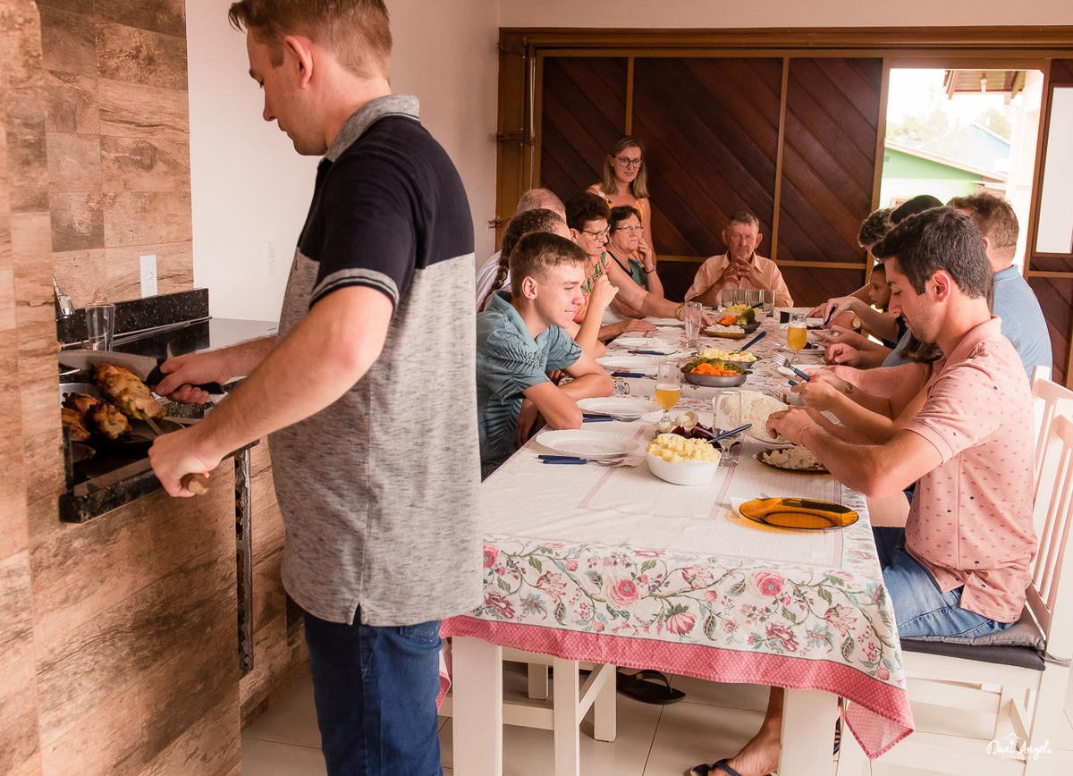 Após a cerimônia todos se dirigiram para a casa dos papais e lá foi continuava a festa.