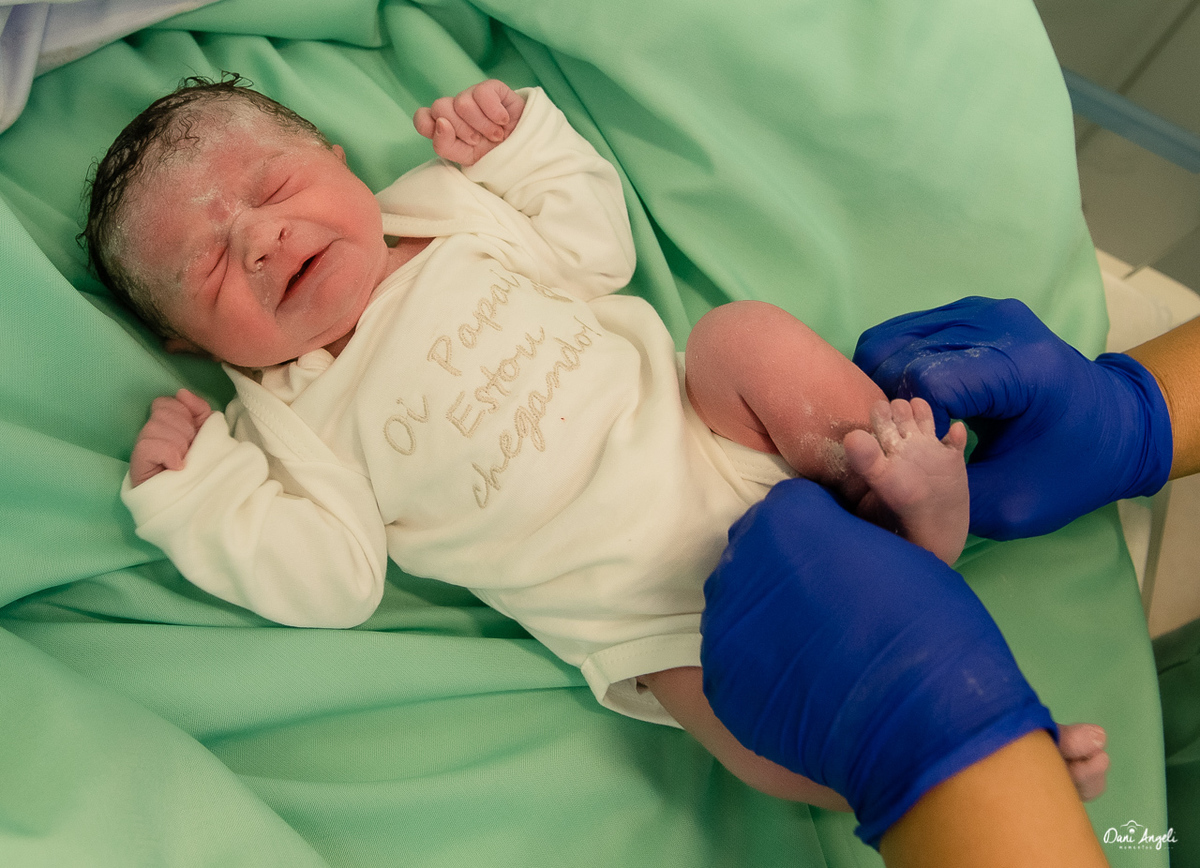 A Duda nasceu e foi super discreta, chorou pouco, se comportou, ouviu a voz do papai e mais calma foi ficando. Uma mocinha linda que vai dar muito o que falar.