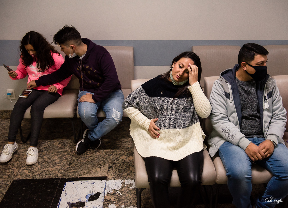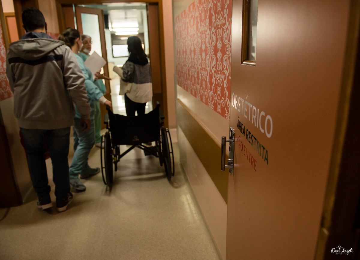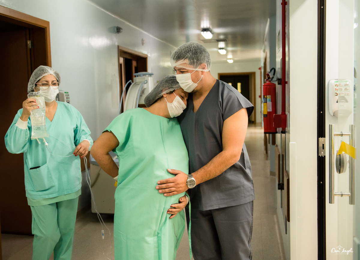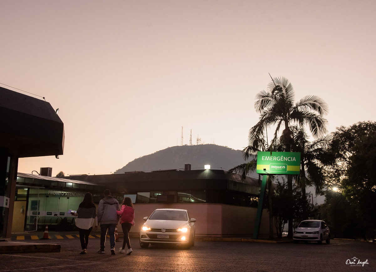 Encontramos os papais e a mana ainda no carro, no estacionamento, pegando suas malinhas e acompanhamos até o hospital. O dia estava clareando, e os ânimos estavam muito elevados.