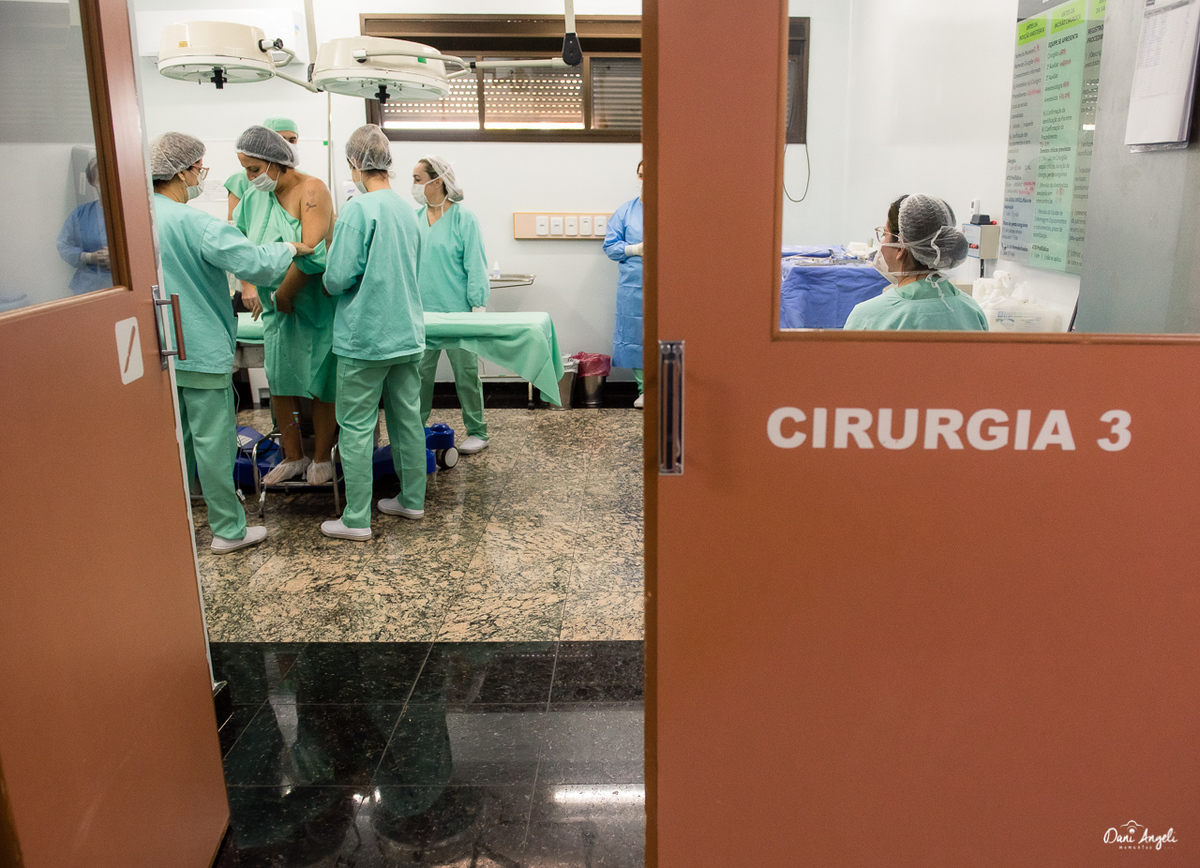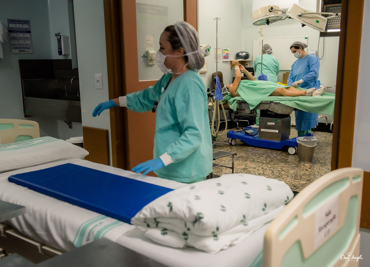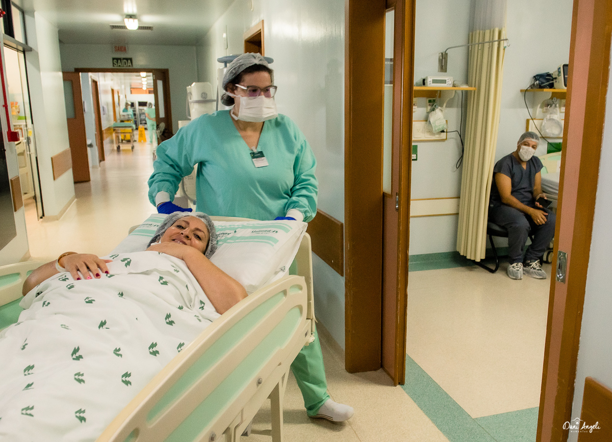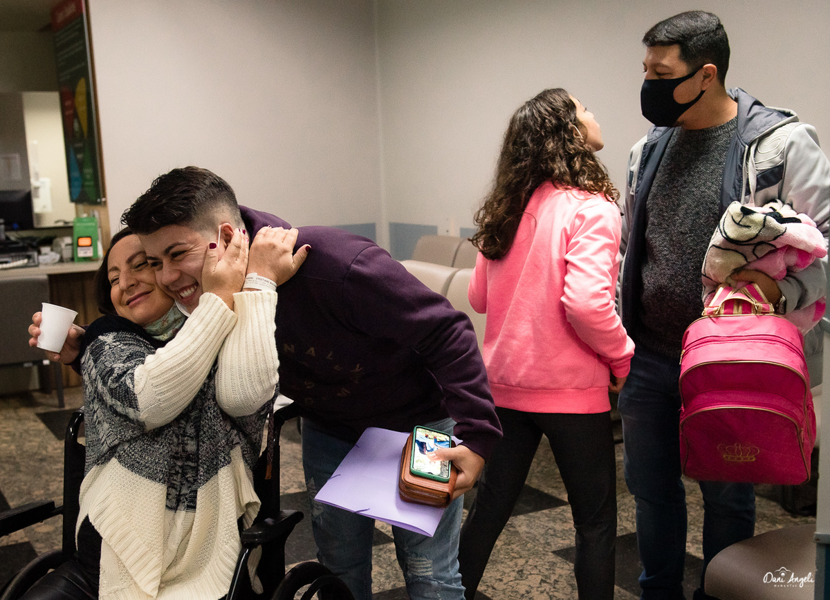 Encontramos os papais e a mana ainda no carro, no estacionamento, pegando suas malinhas e acompanhamos até o hospital. O dia estava clareando, e os ânimos estavam muito elevados.