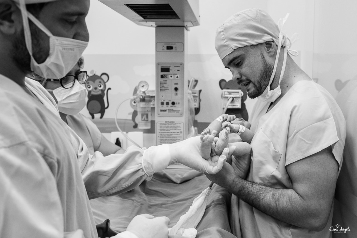 Quando estamos na sala de parto, nunca podemos saber como será a reação das pessoas. Ainda mais sendo a primeira vez do papai e da mamãe. E nesta manhã tivemos tudo, choros, sorrisos, carinhos, e um gurizinho que roubou a cena, se apresentando com o novo amor da vida dos papais.