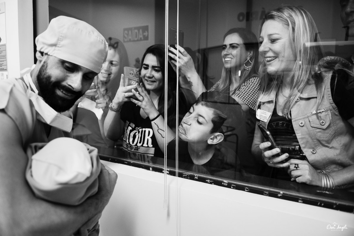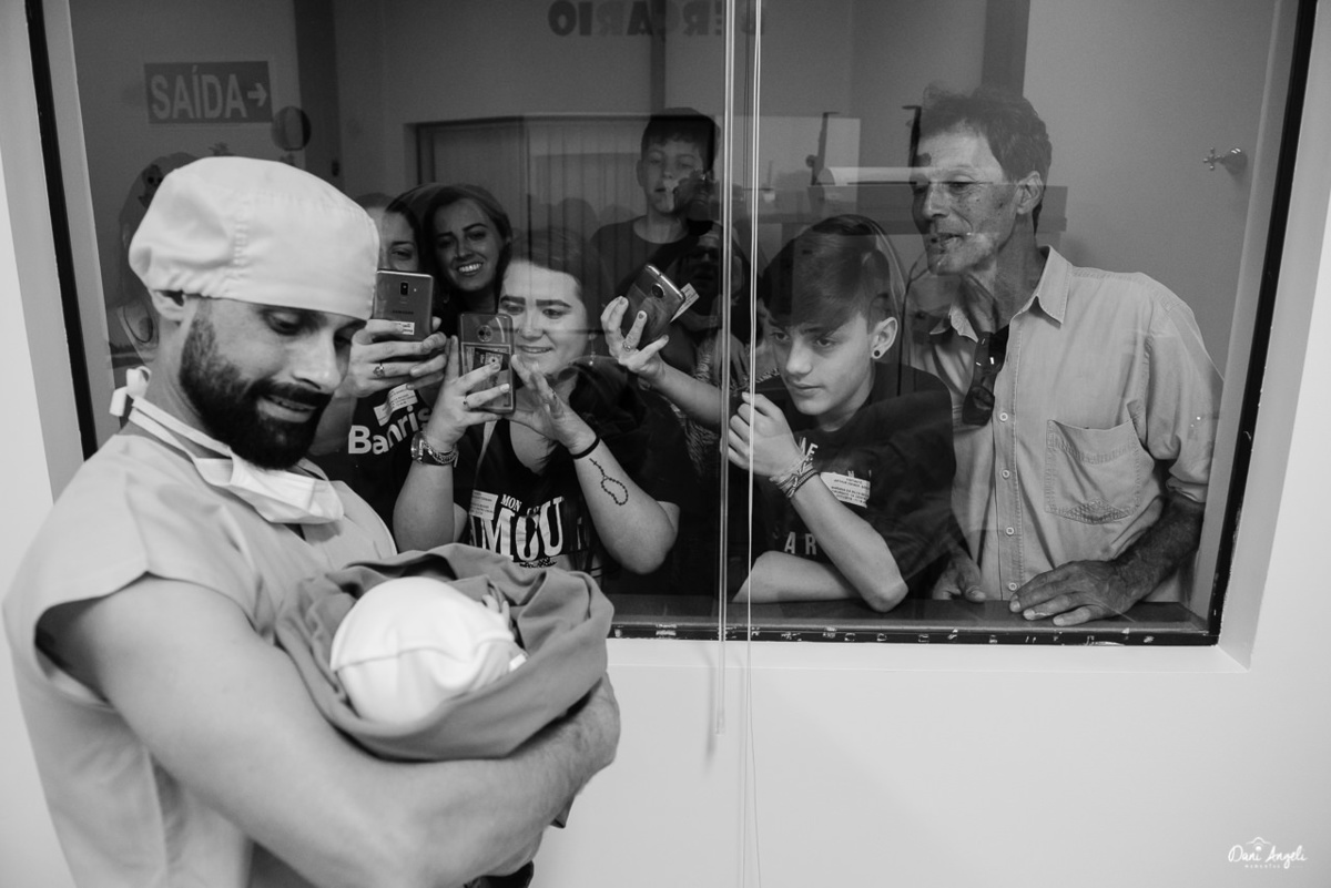 A Lívia nasceu. Agora chega a hora da sala de espera ligar suas câmeras de celulares e pegar seus lencinhos. Nunca nos cansamos desta parte. Os olhares, os sorrisos, os durões que se derretem, o orgulho do papai apresentando sua menininha. Que alegria, que momento único.