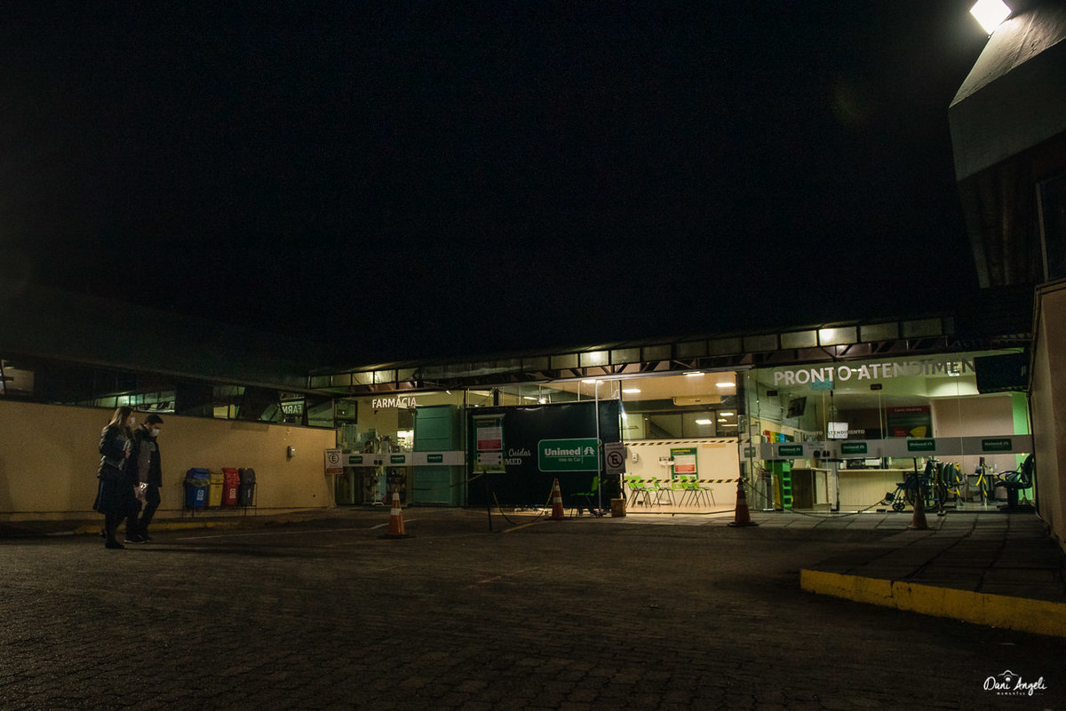 Bom, a Bruna e o Felipe passaram em uma madrugada bem fria. Ainda estava escuro quando chegamos ao hospital.