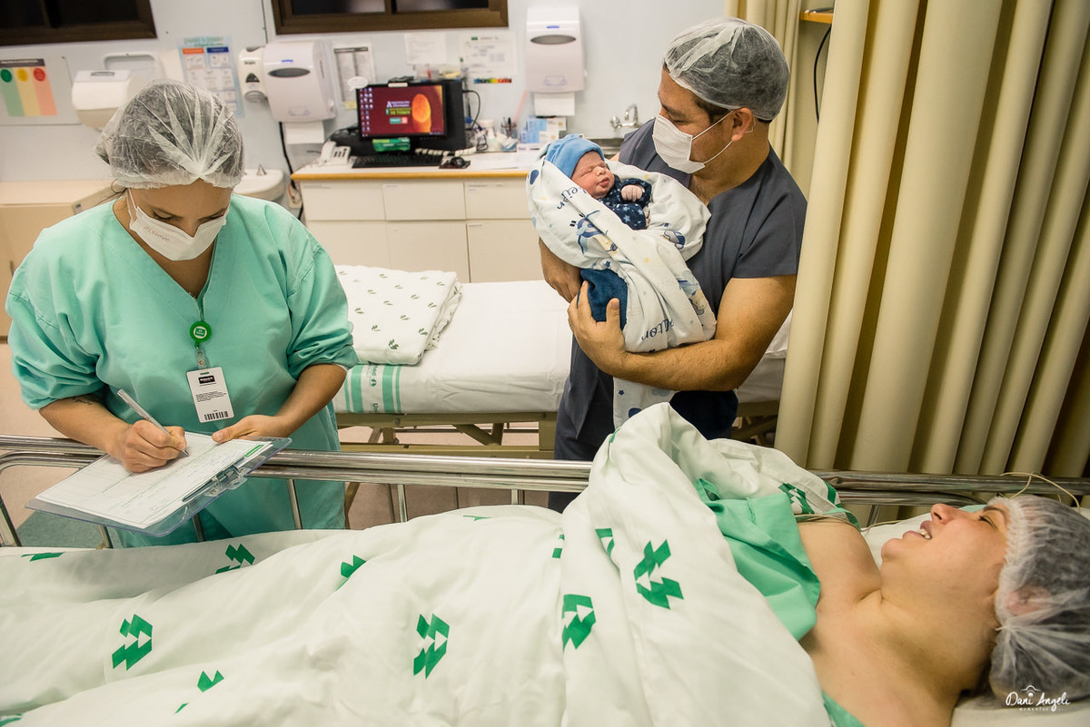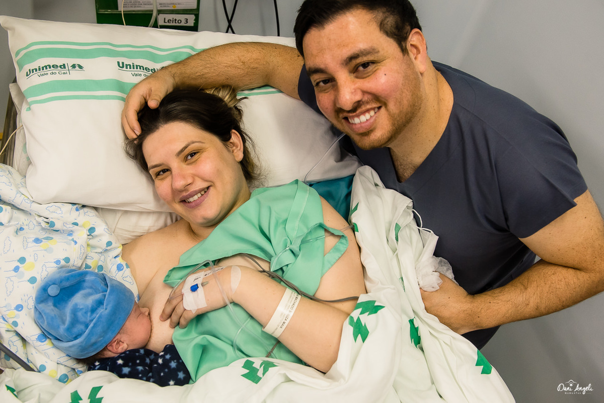 Heitor veio lindo, com bochechas lindas e o bocão. Logo pediu colo do pai e para tranquilidade de todos, mamou.