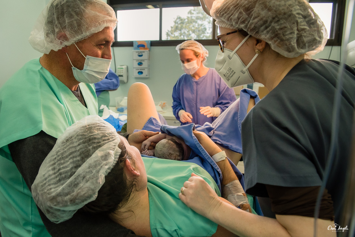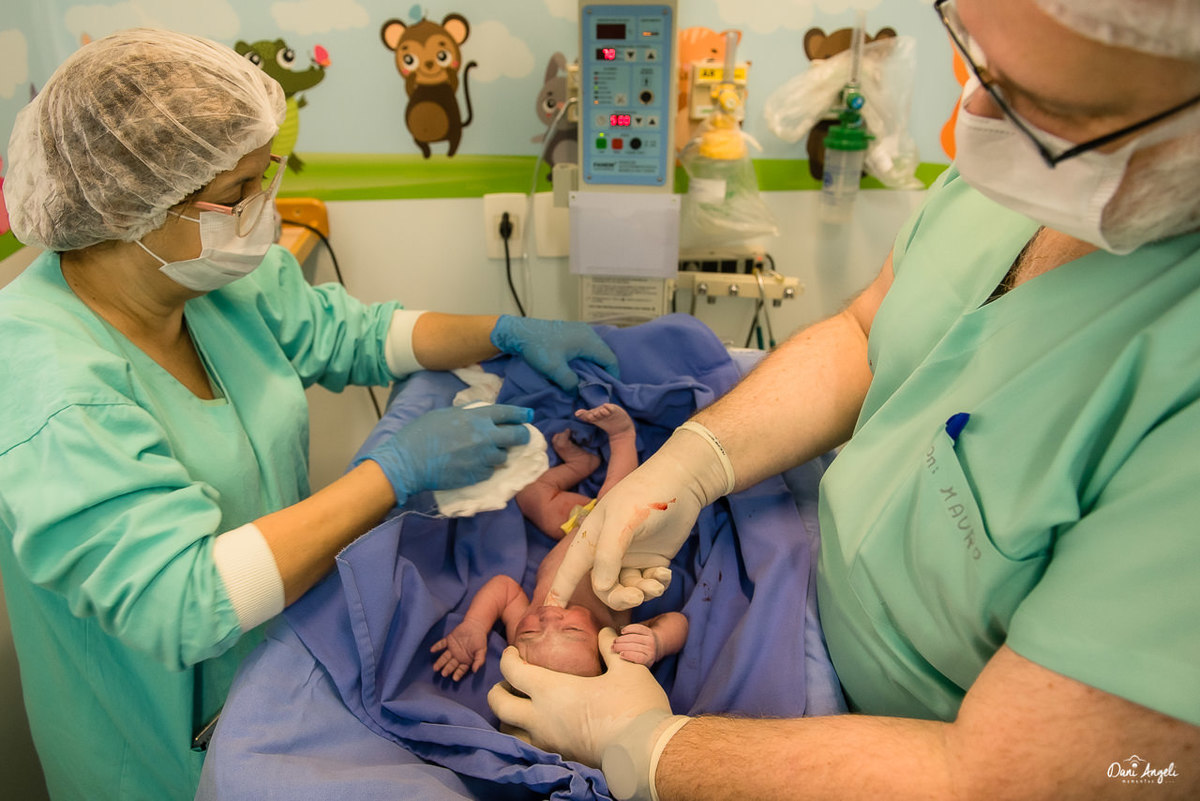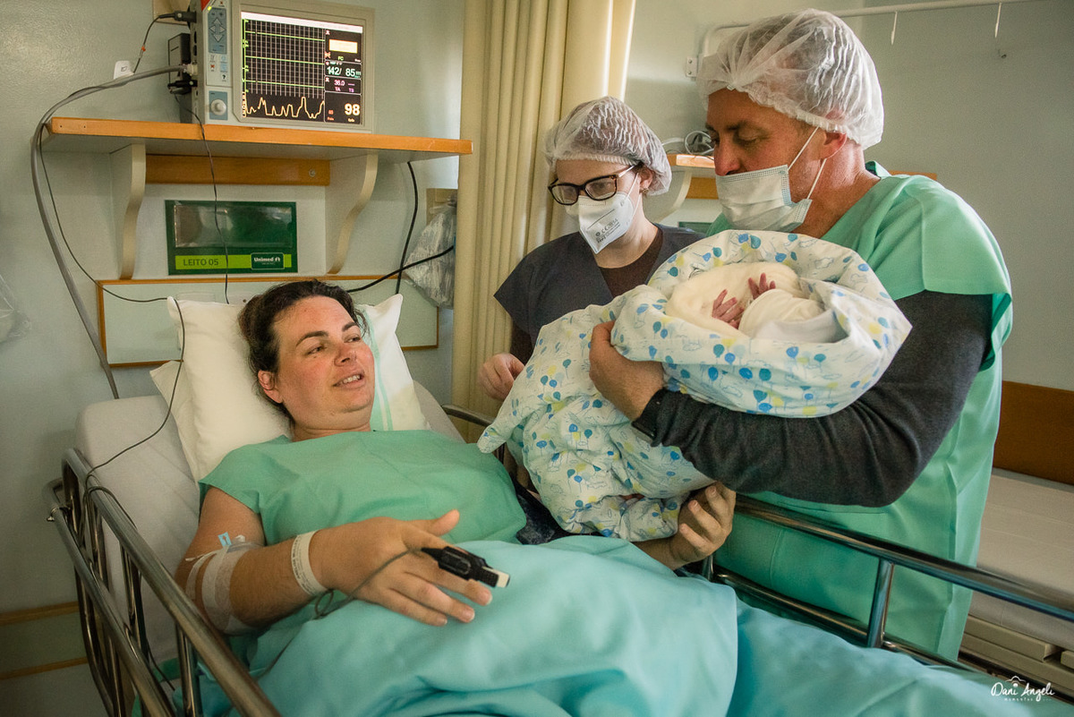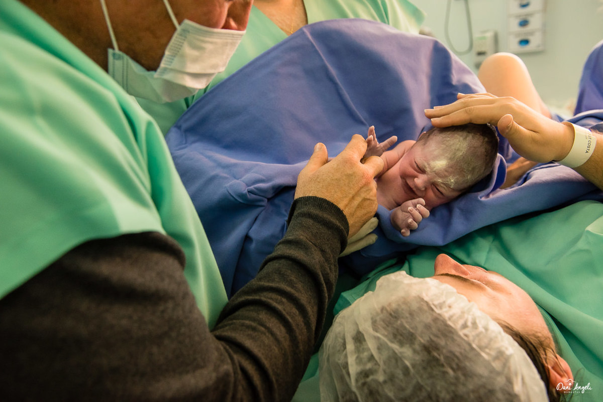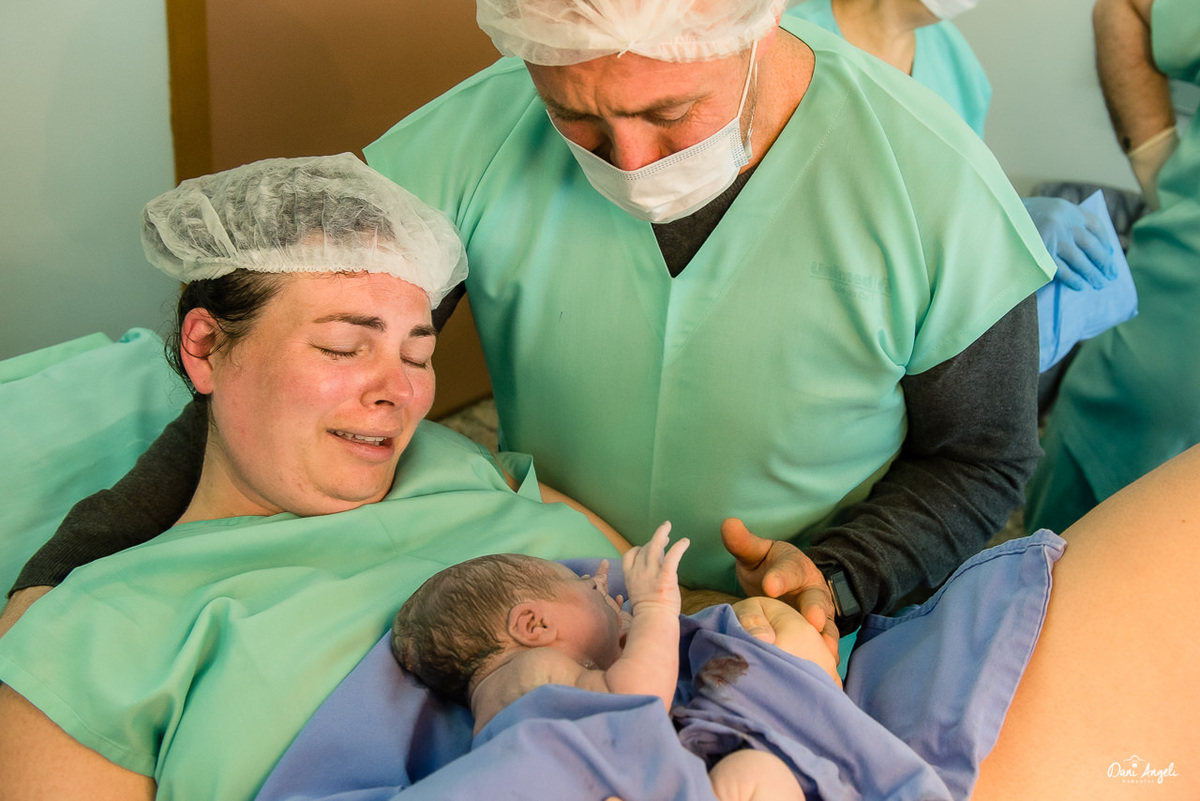O sentimento foi surreal, estavamos todos ali vivendo intensamente a chegada dessa guriazinha perfeita, linda, gordinha, e que se acalmava ouvindo as vozes dos papais.