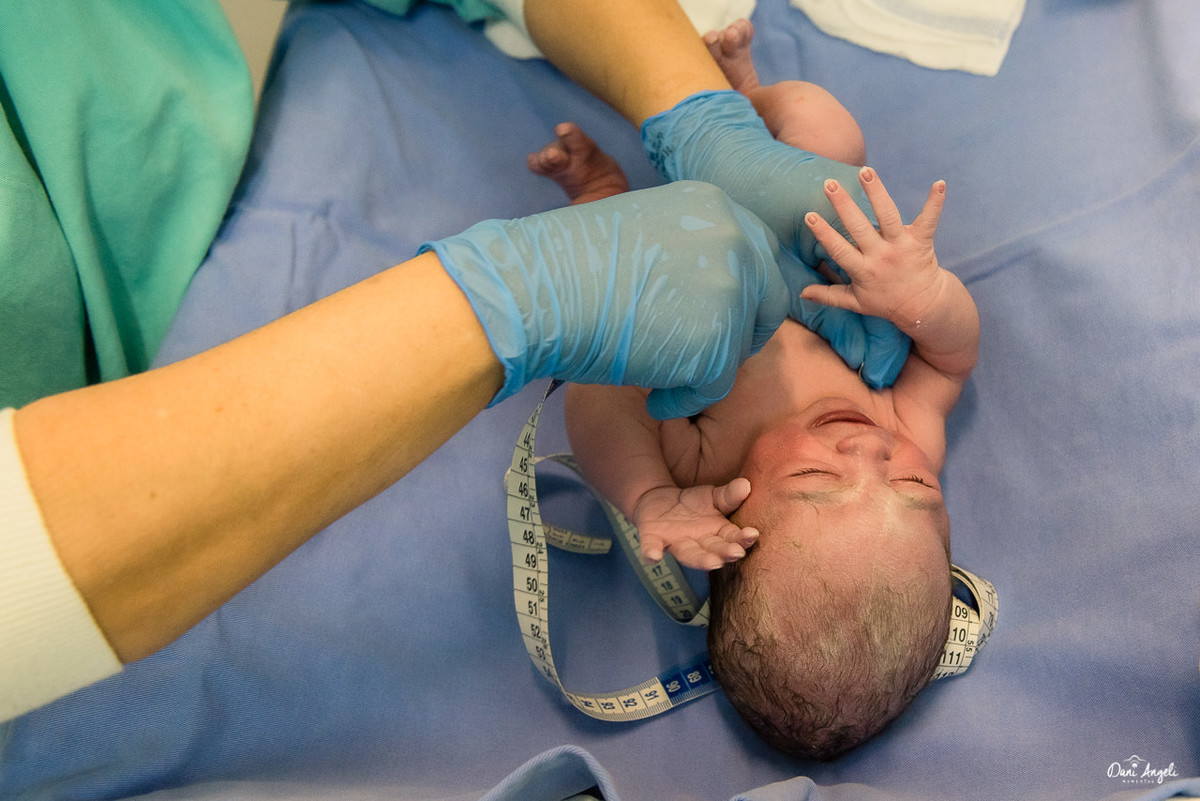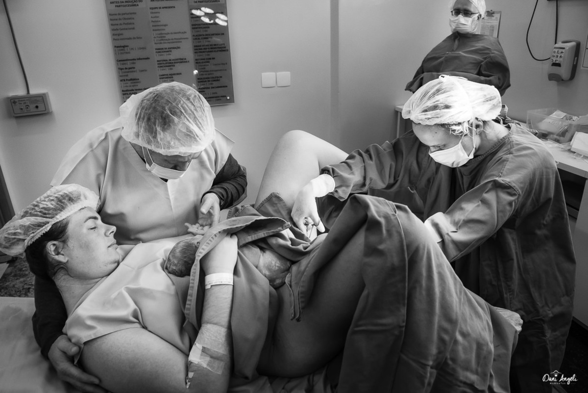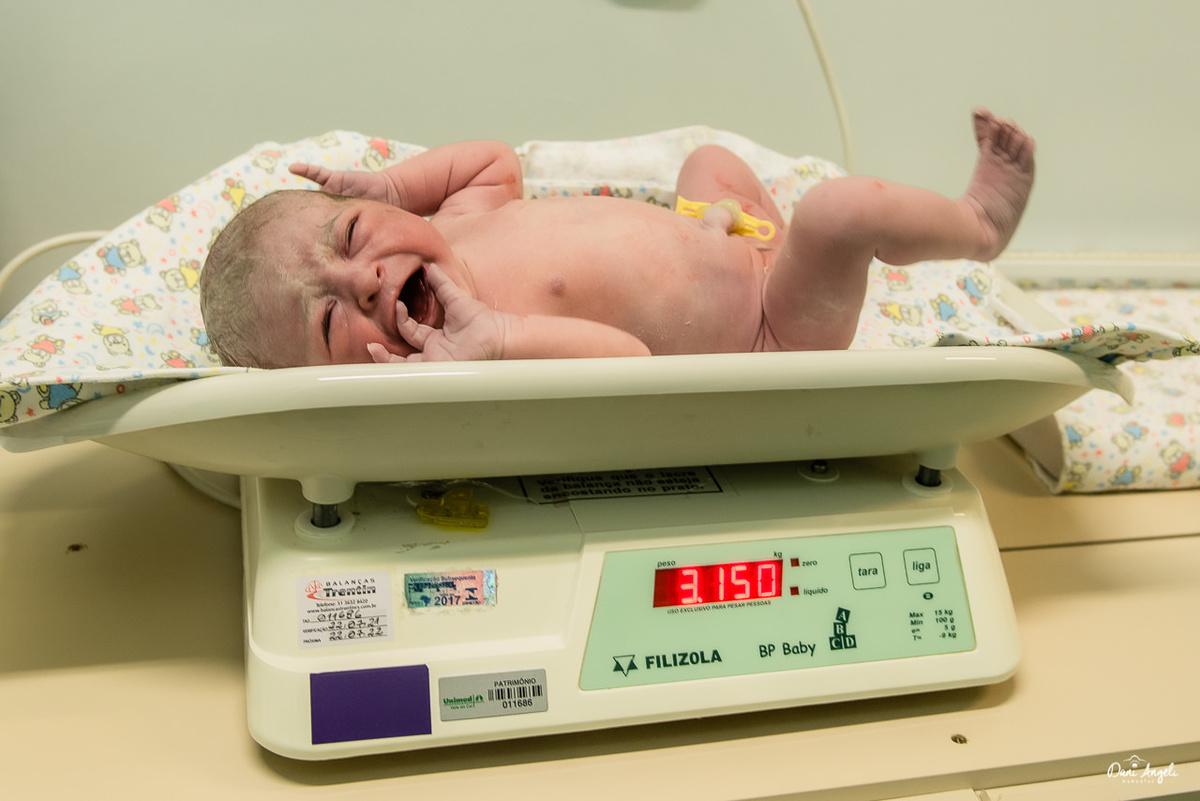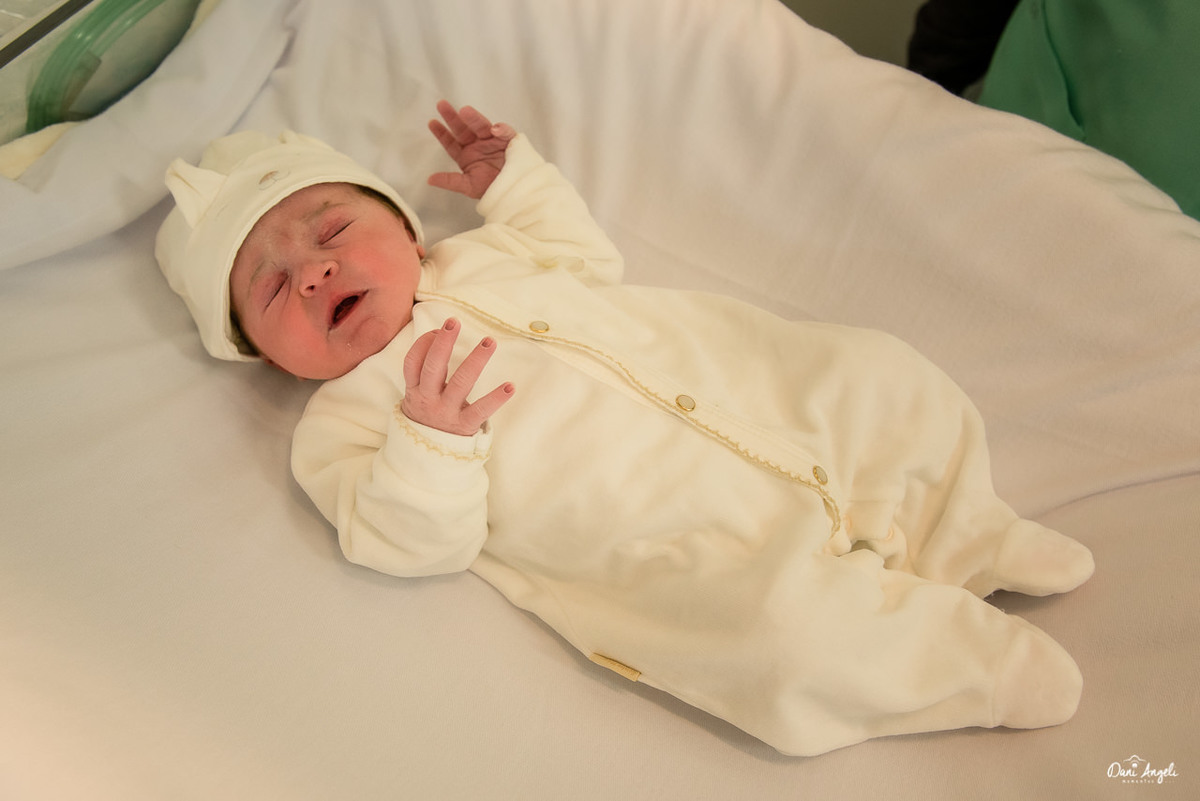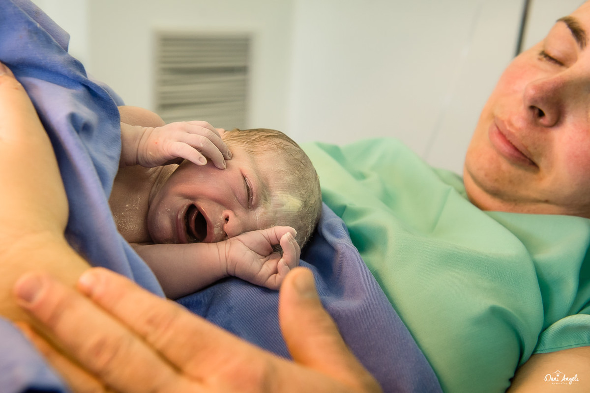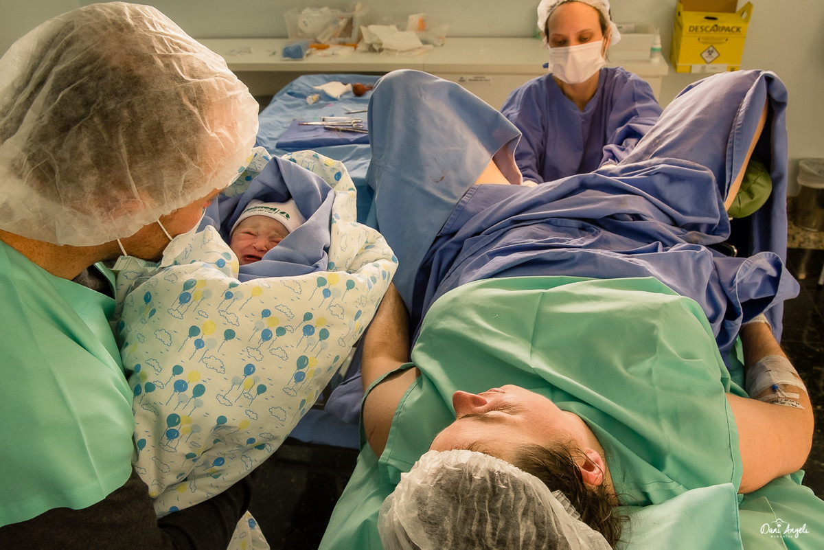 O sentimento foi surreal, estavamos todos ali vivendo intensamente a chegada dessa guriazinha perfeita, linda, gordinha, e que se acalmava ouvindo as vozes dos papais.